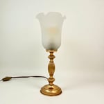 Lampe vintage en laiton doré et opaline tulipe plissée corole vintage