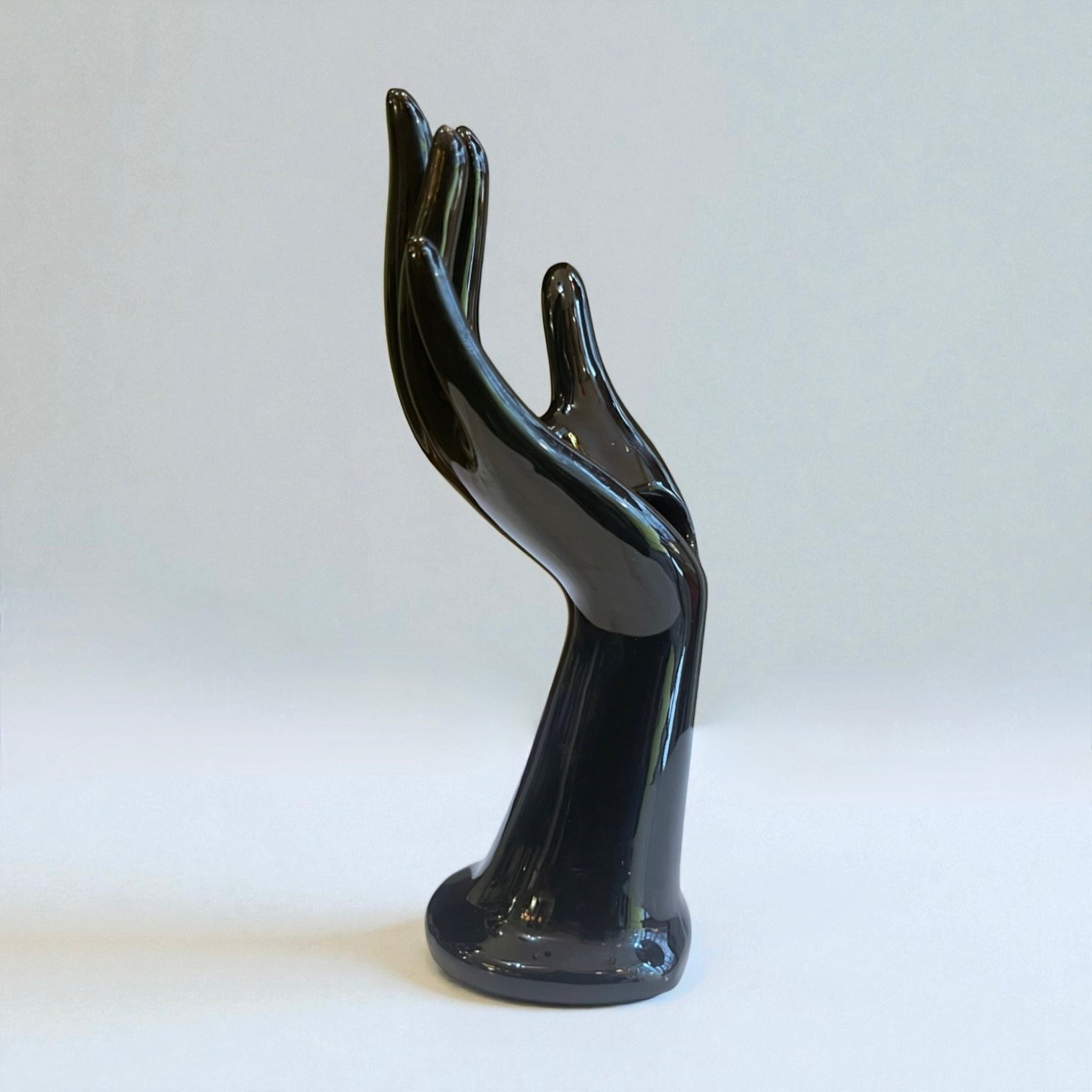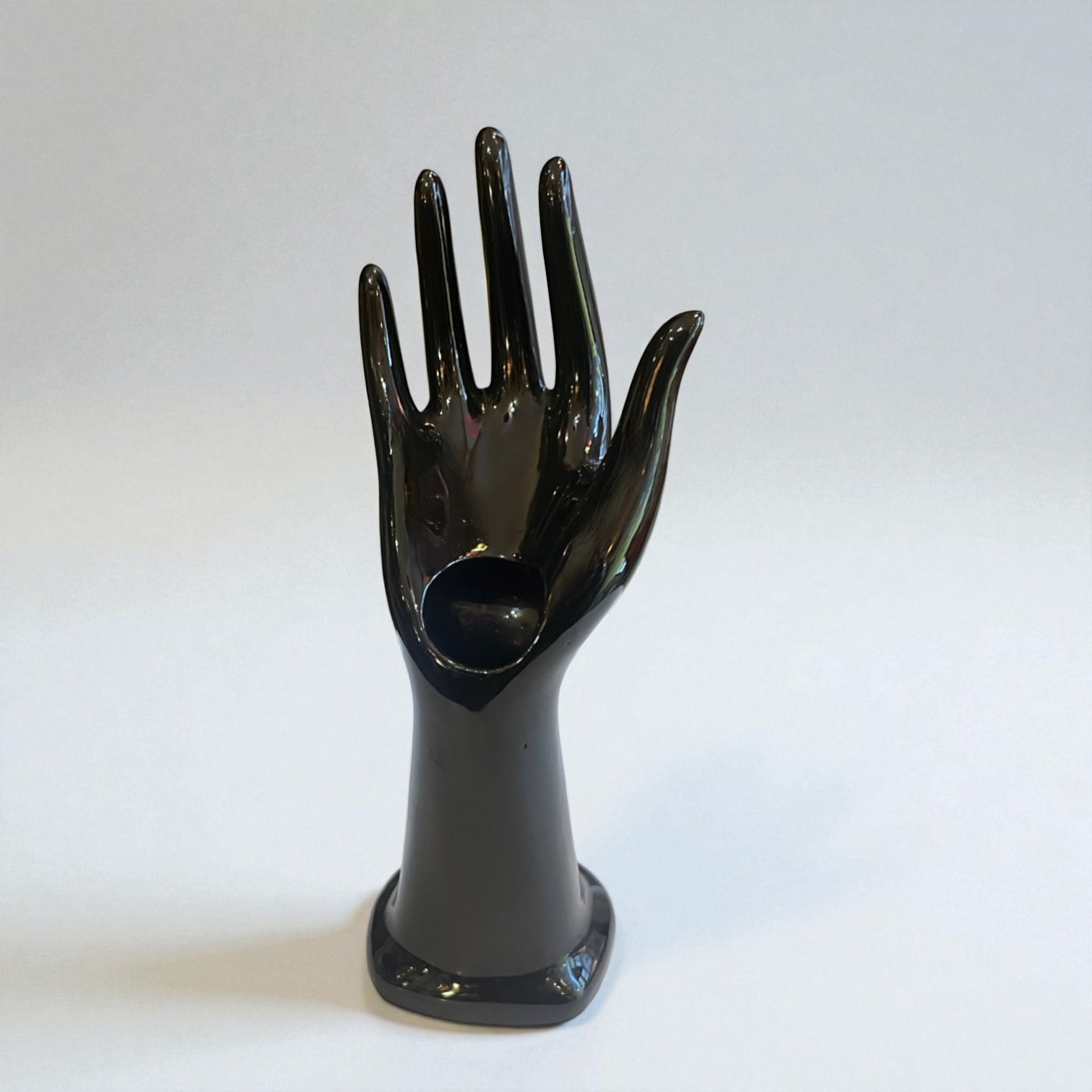 Main baguier soliflore en porcelaine noire vintage 1970 - vase - soliflore porte-bijoux