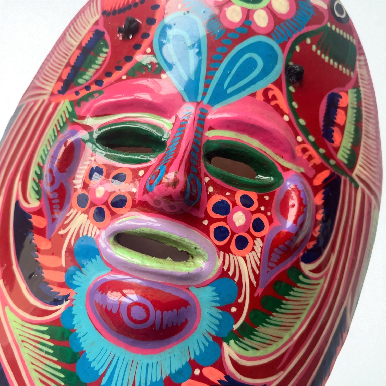 Masque mexicain vintage en terre cuite peint à la main – Années 70 - 80