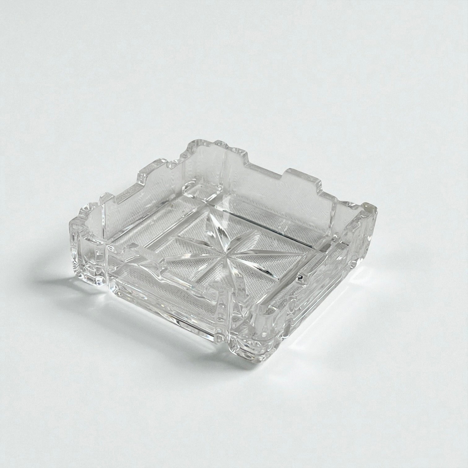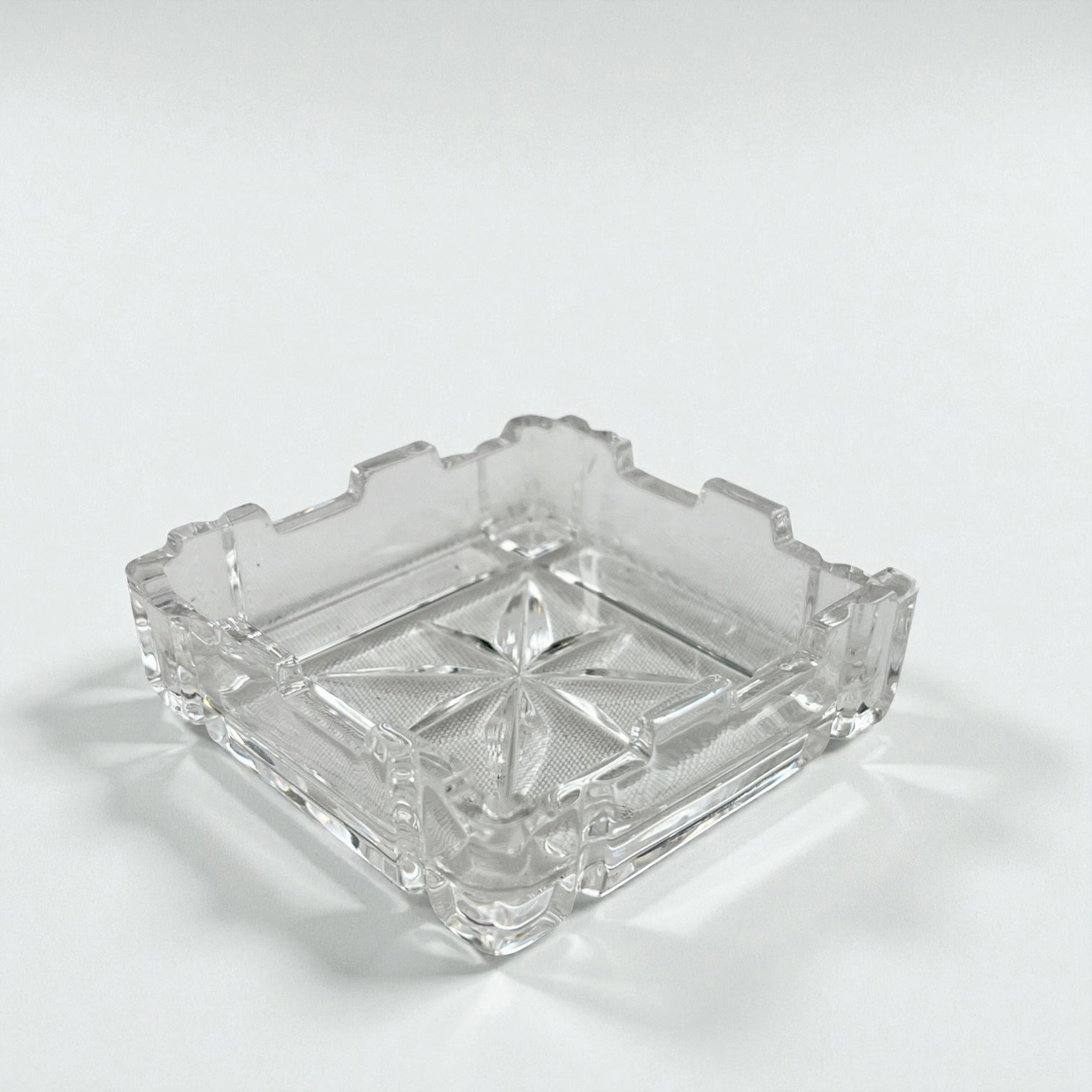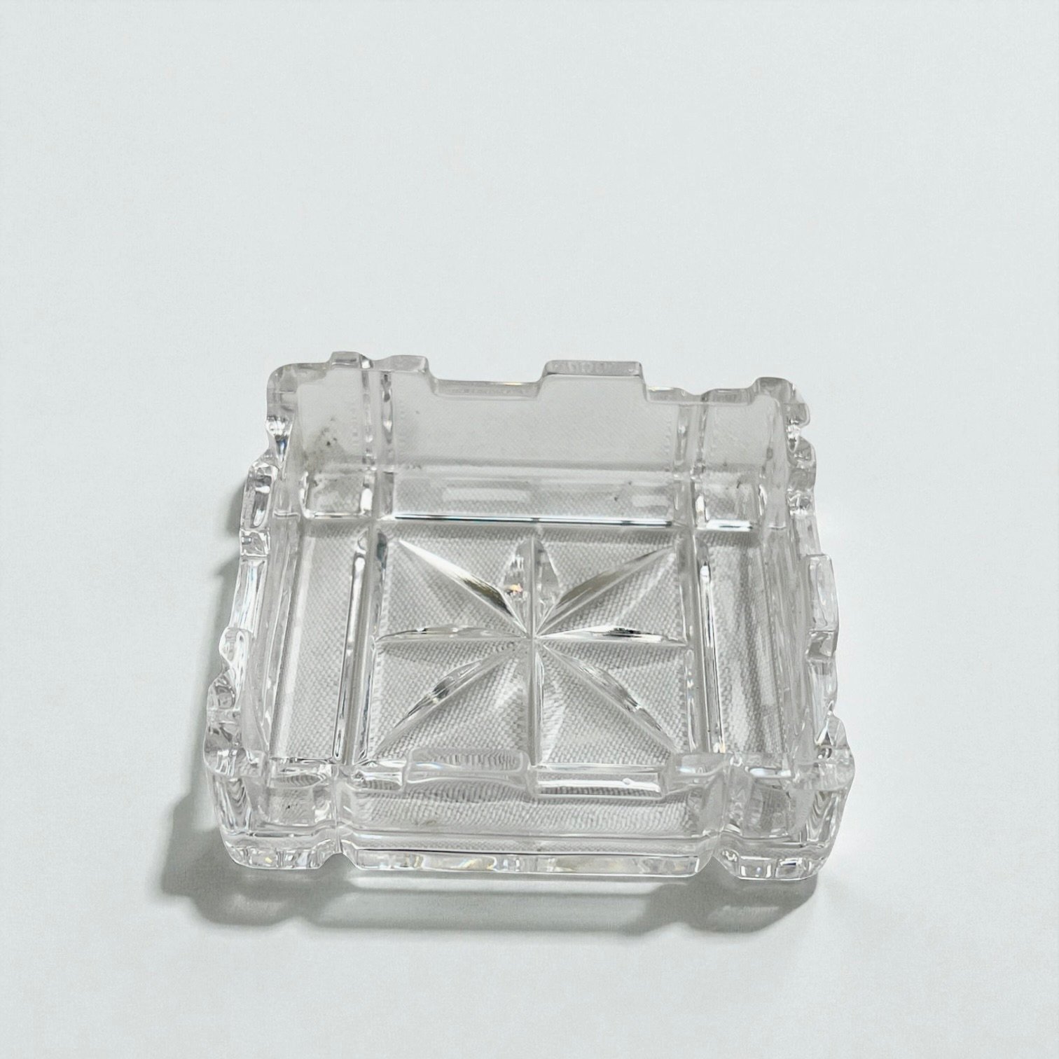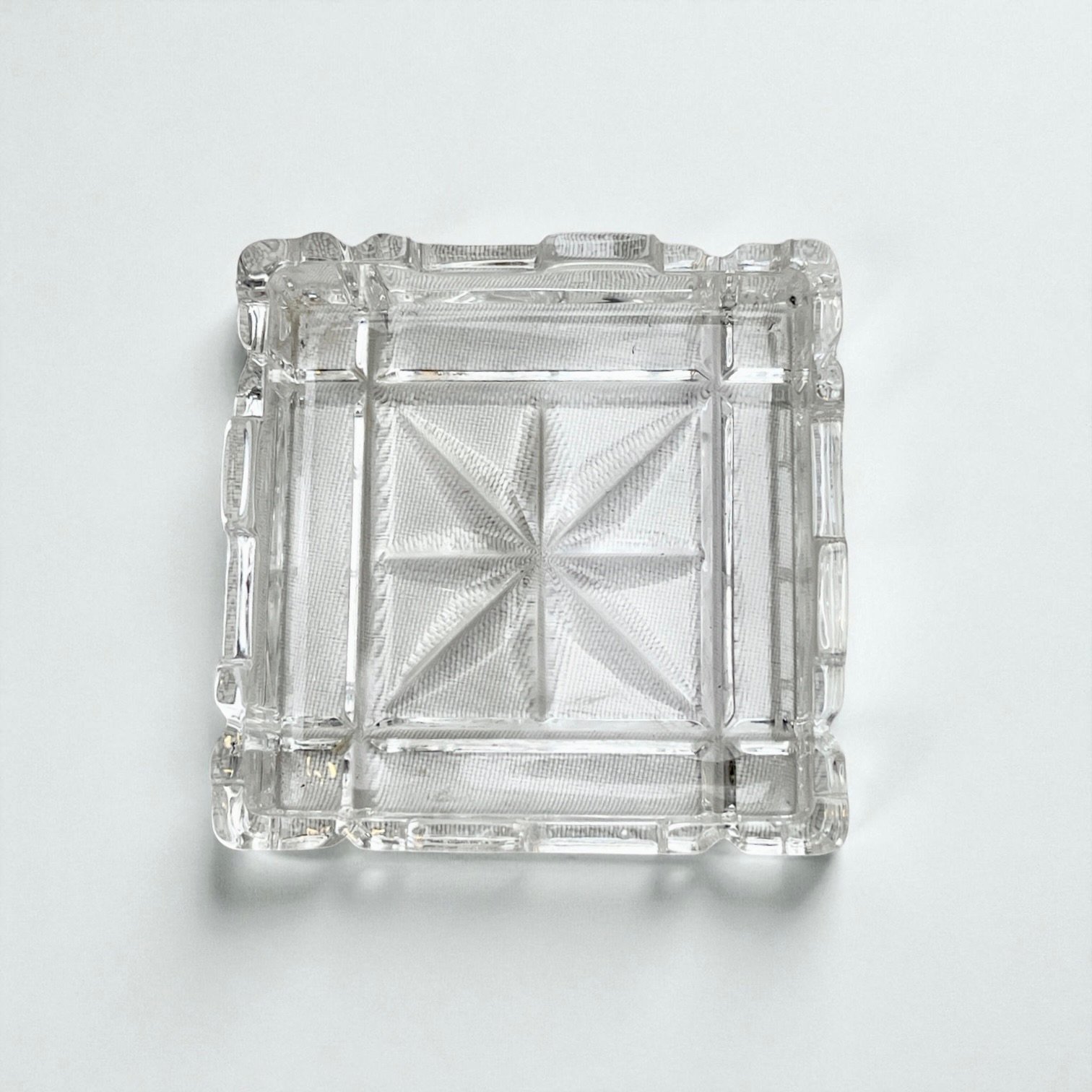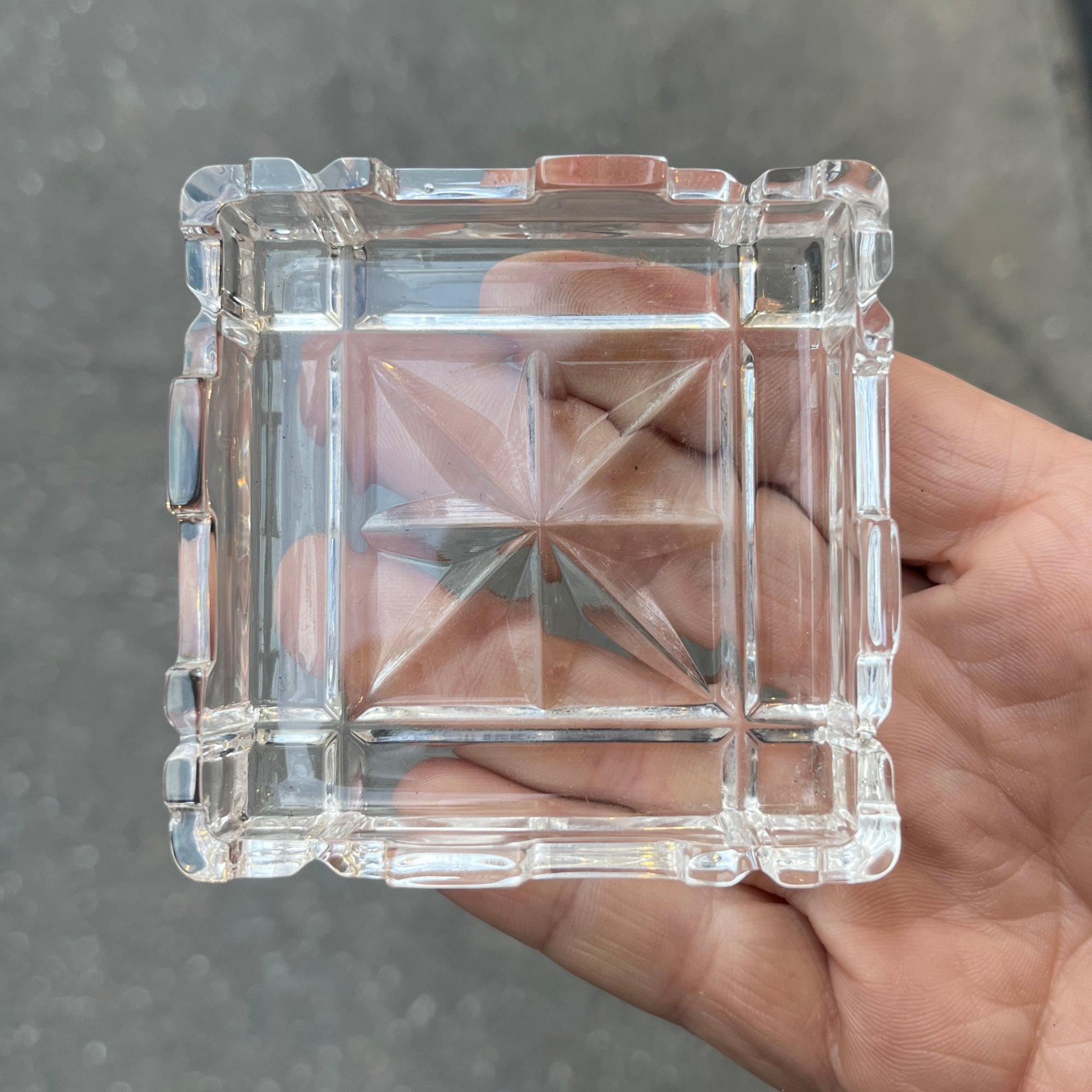 Petit cendrier ou vide-poches carré en cristal taillé vintage 1960 - 1970.