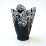 Vase vintage Vallauris 1950 - 60 en faïence Fat Lava bleu indigo et blanc au design organique s'ouvrant comme une fleur.