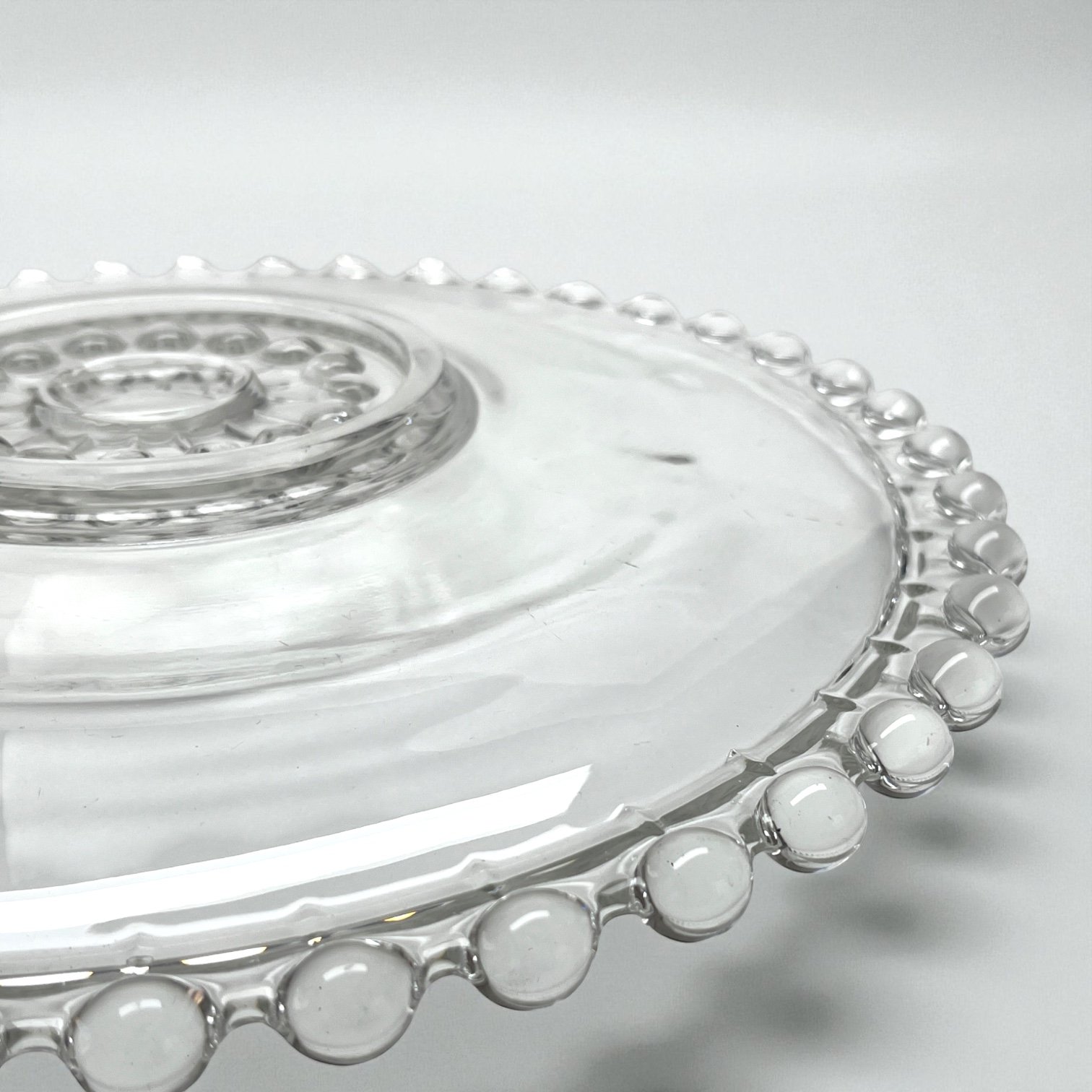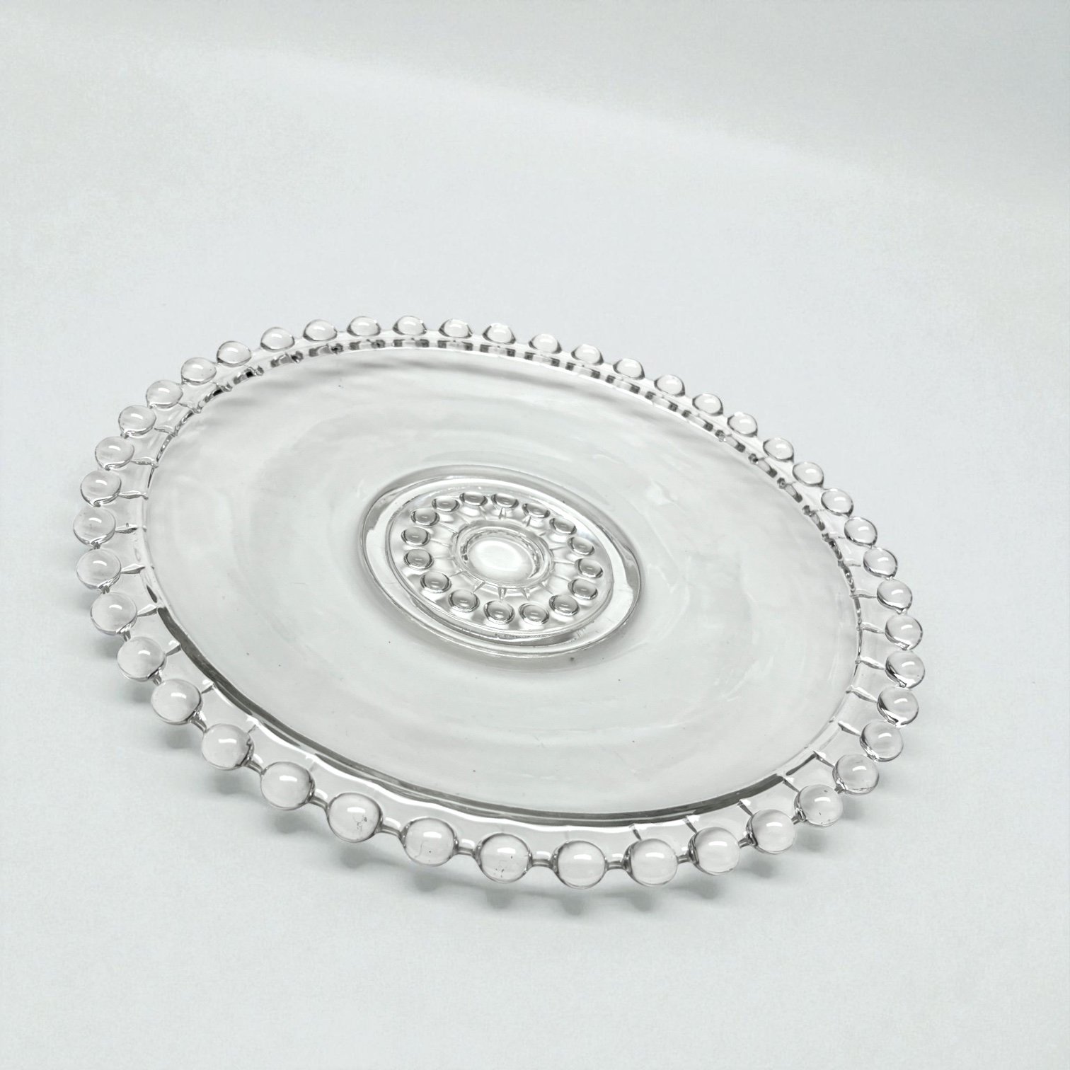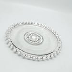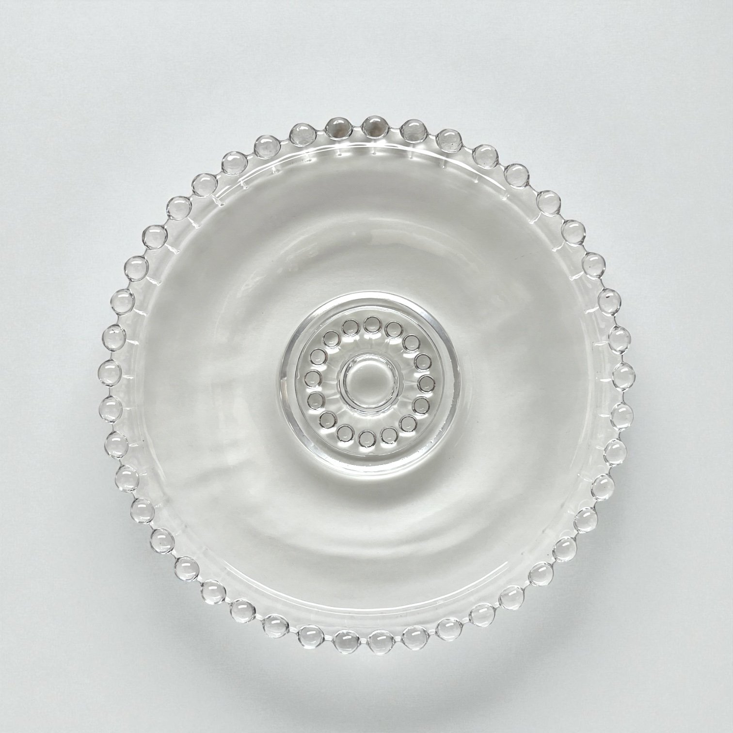 Plat Art Déco en verre bordure perlé vintage 1900 - Plateau en verre bord perles