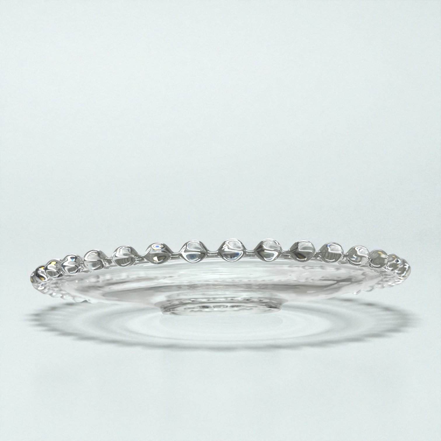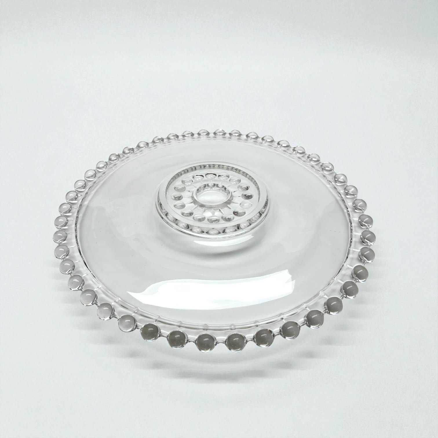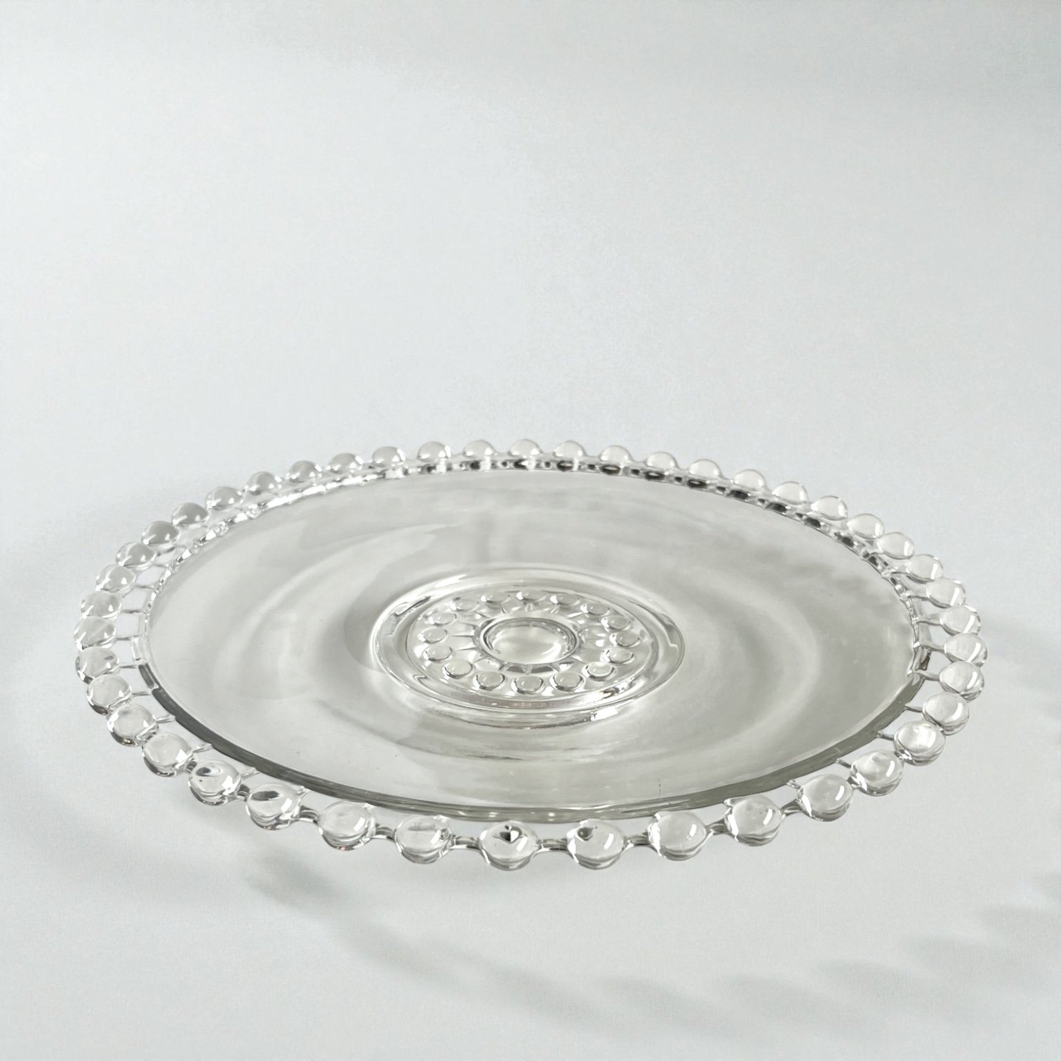 Plat Art Déco en verre bordure perlé vintage 1900 - Plateau en verre bord perles