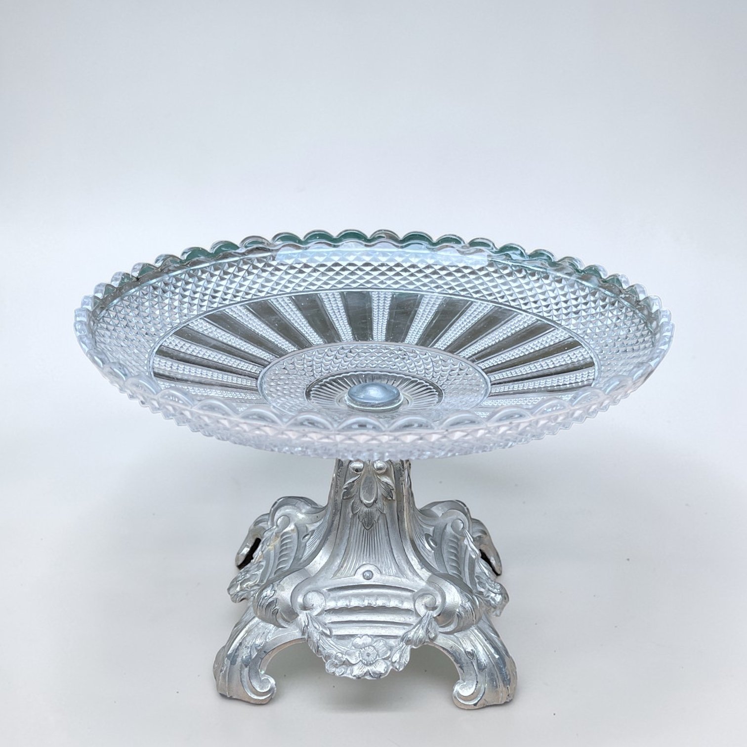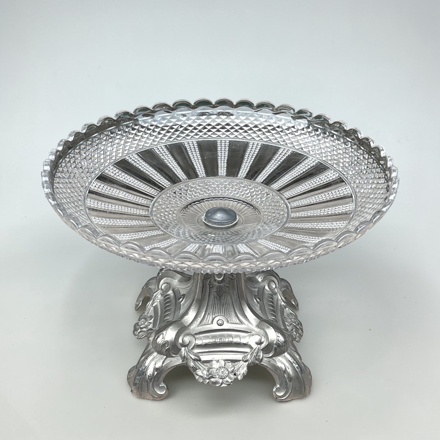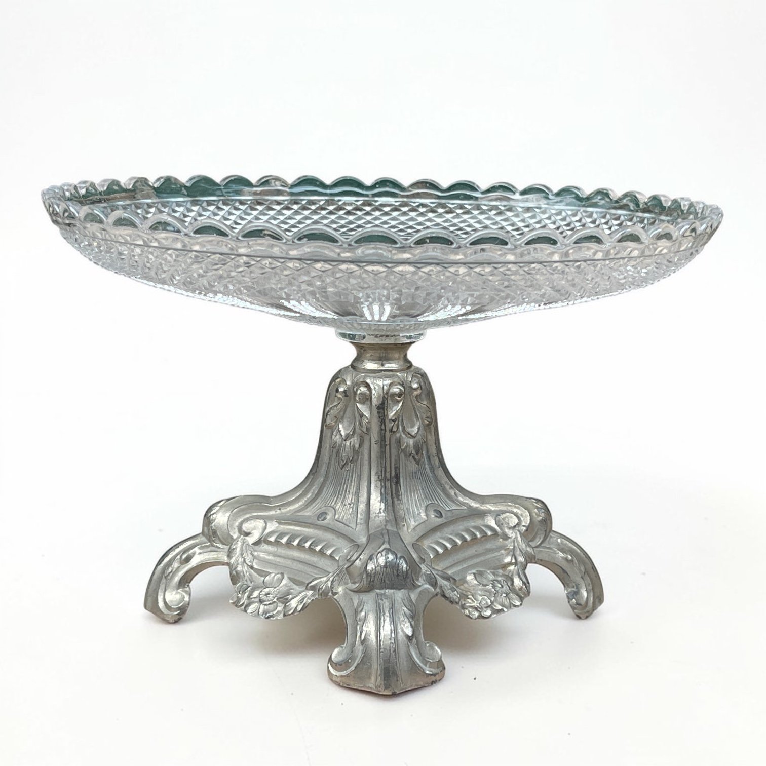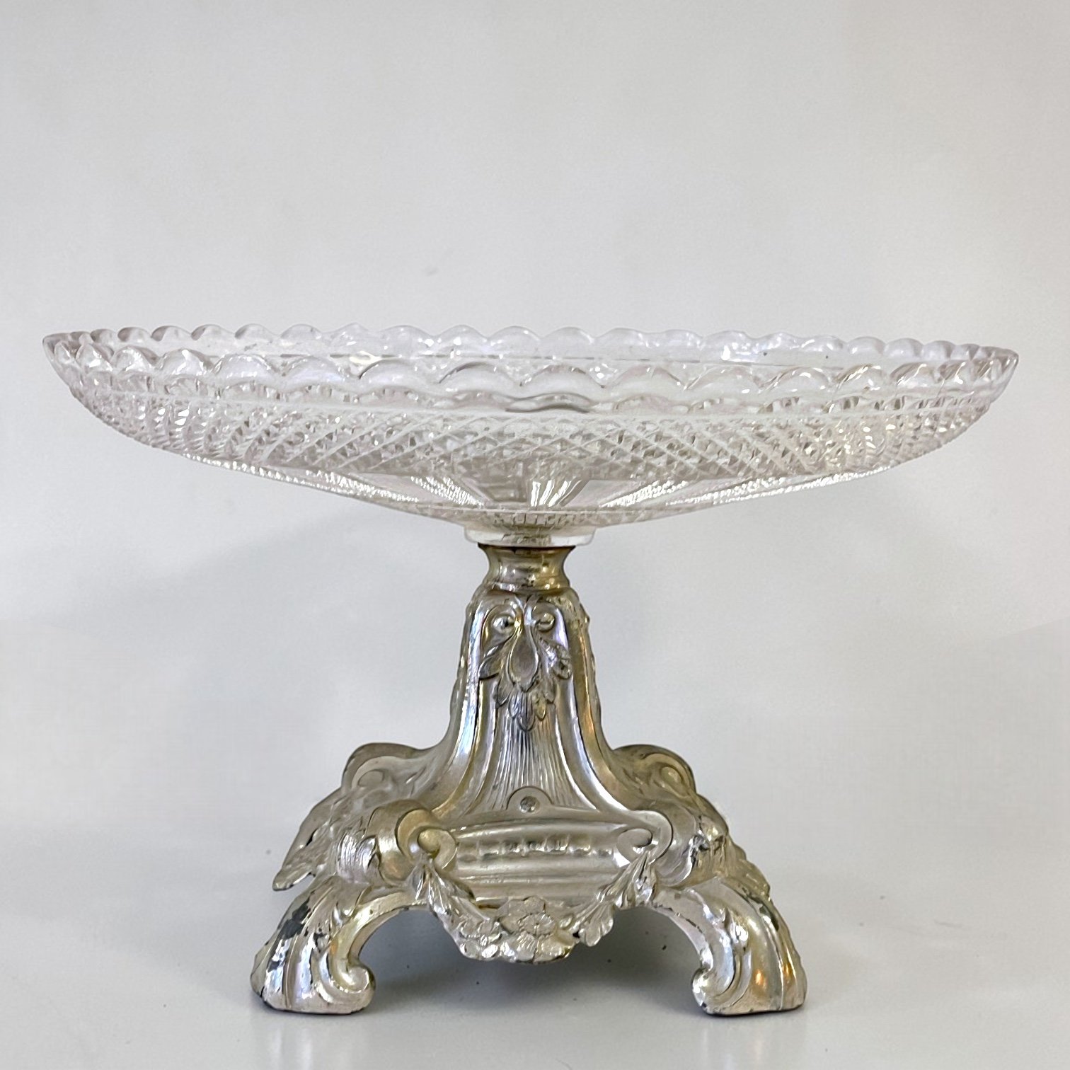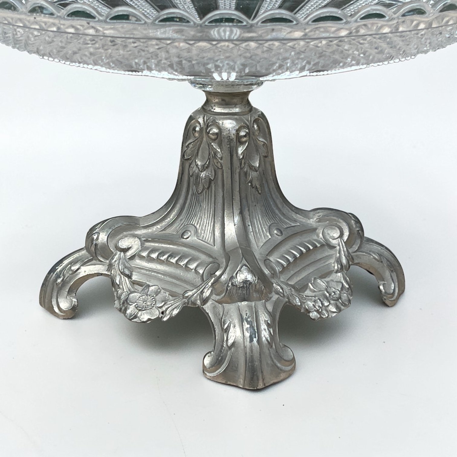 Coupe à fruit Art nouveau en verre taillé et socle métal argenté fin XIXe - Compotier