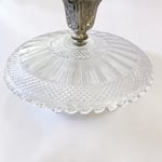 la partie supérieure en verre est rotative sur le socle en métal, permettant de faire tourner la coupe pour un service plus aisé.
