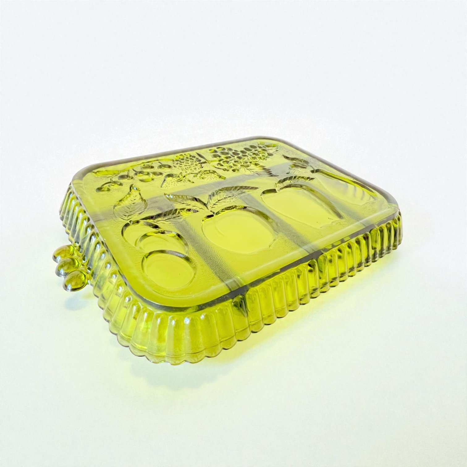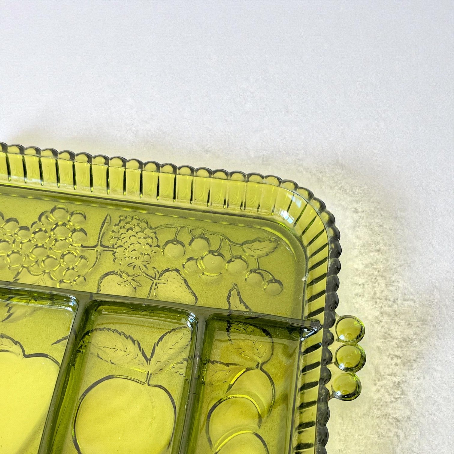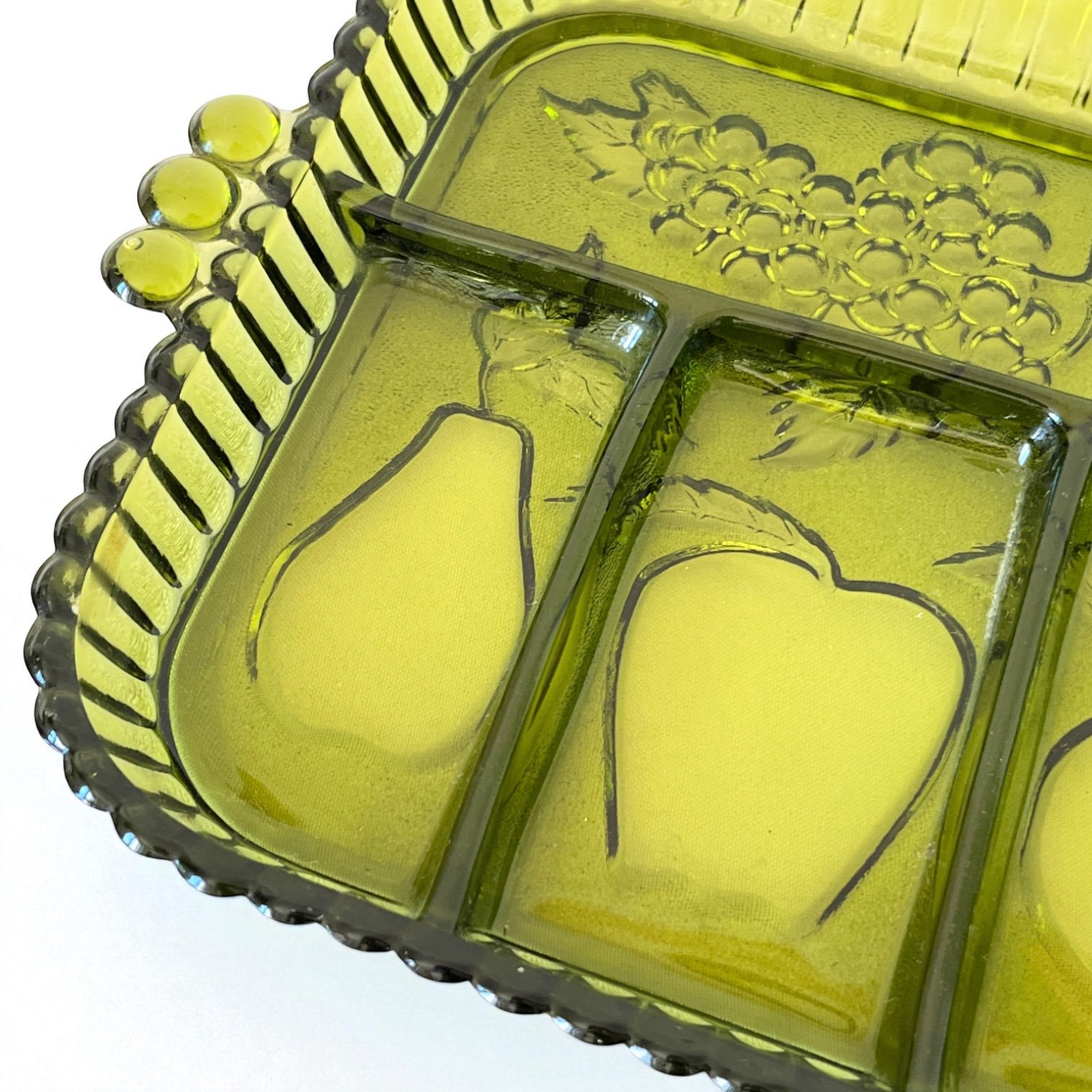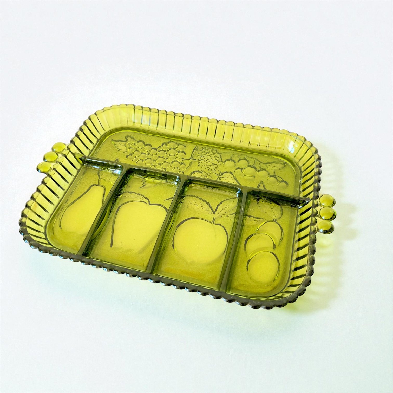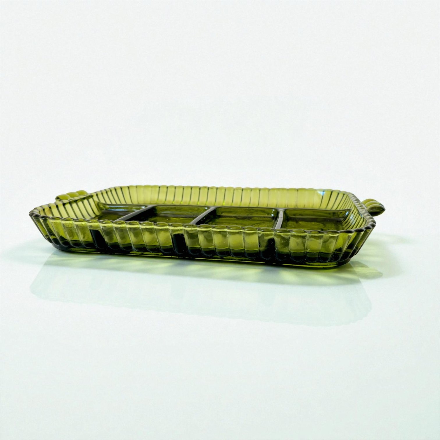 Plateau ancien en verre vert à compartiments – Indiana Glass Company (USA), 1960 ✨