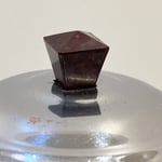 En tôle chromée, avec un élégant bouton en bakélite brune taillé en forme de pyramide, typique du design de cette période.