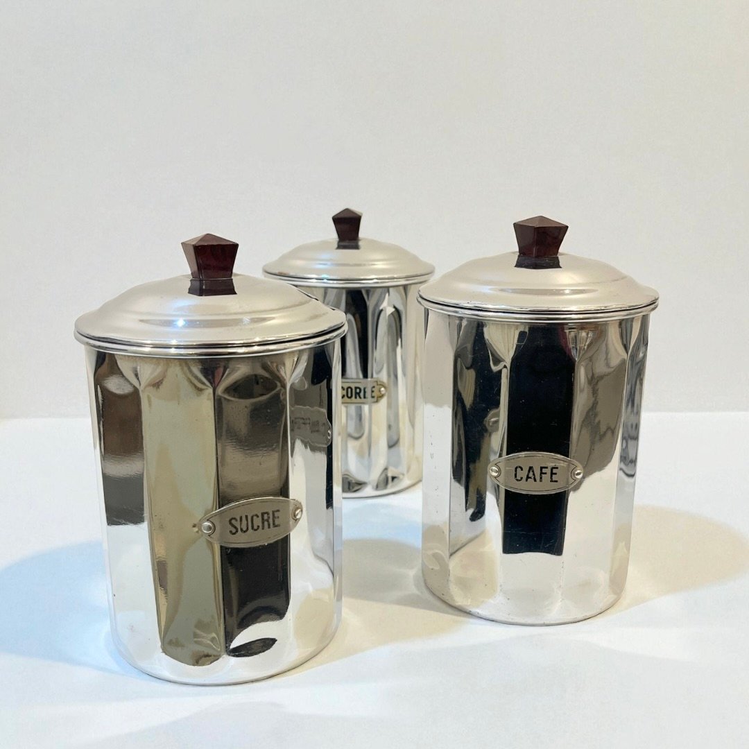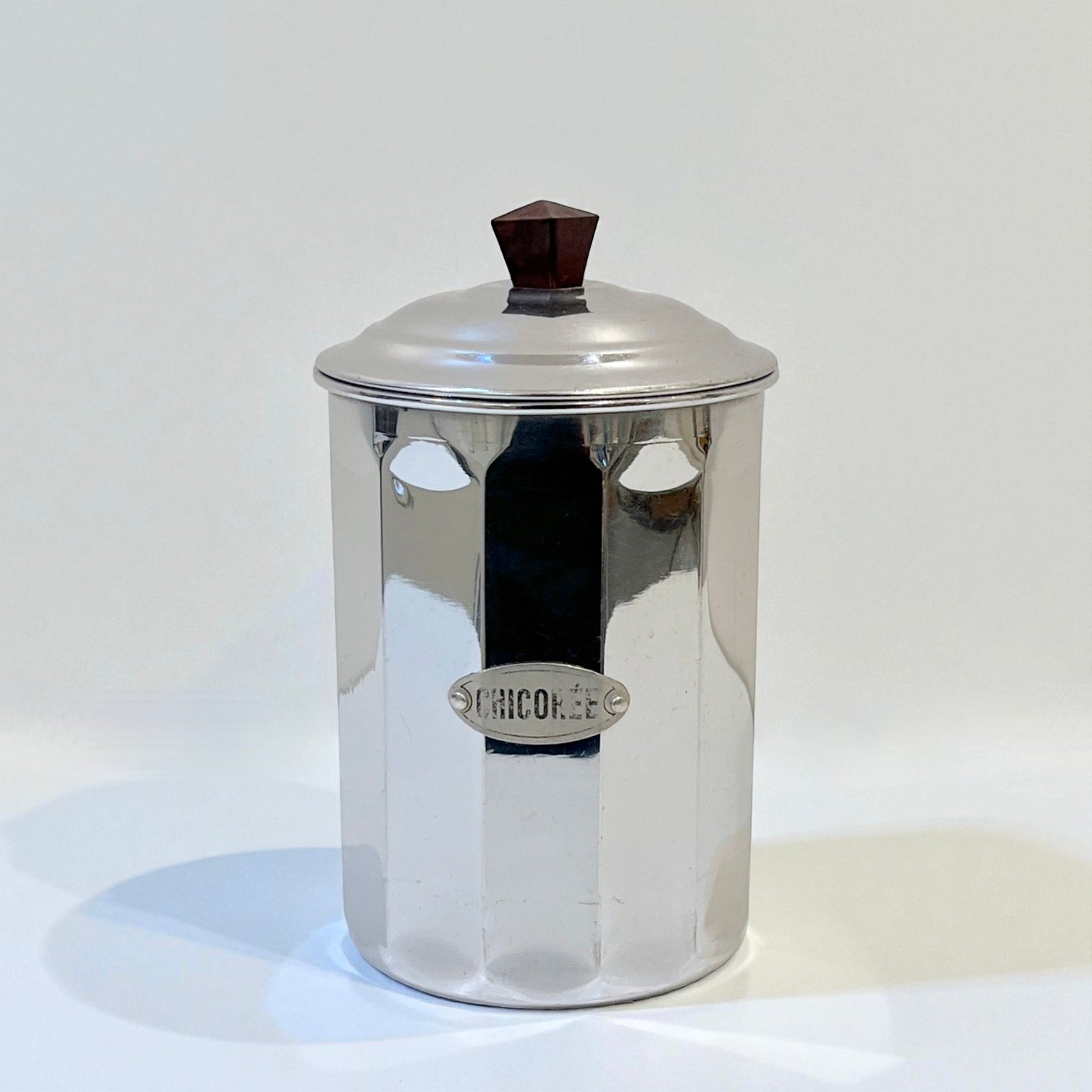 Pot à épices en chrome et bakélite Chicorée – Années 1930 – Boîte Art déco