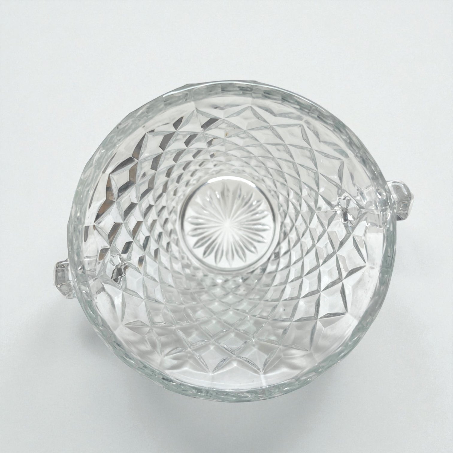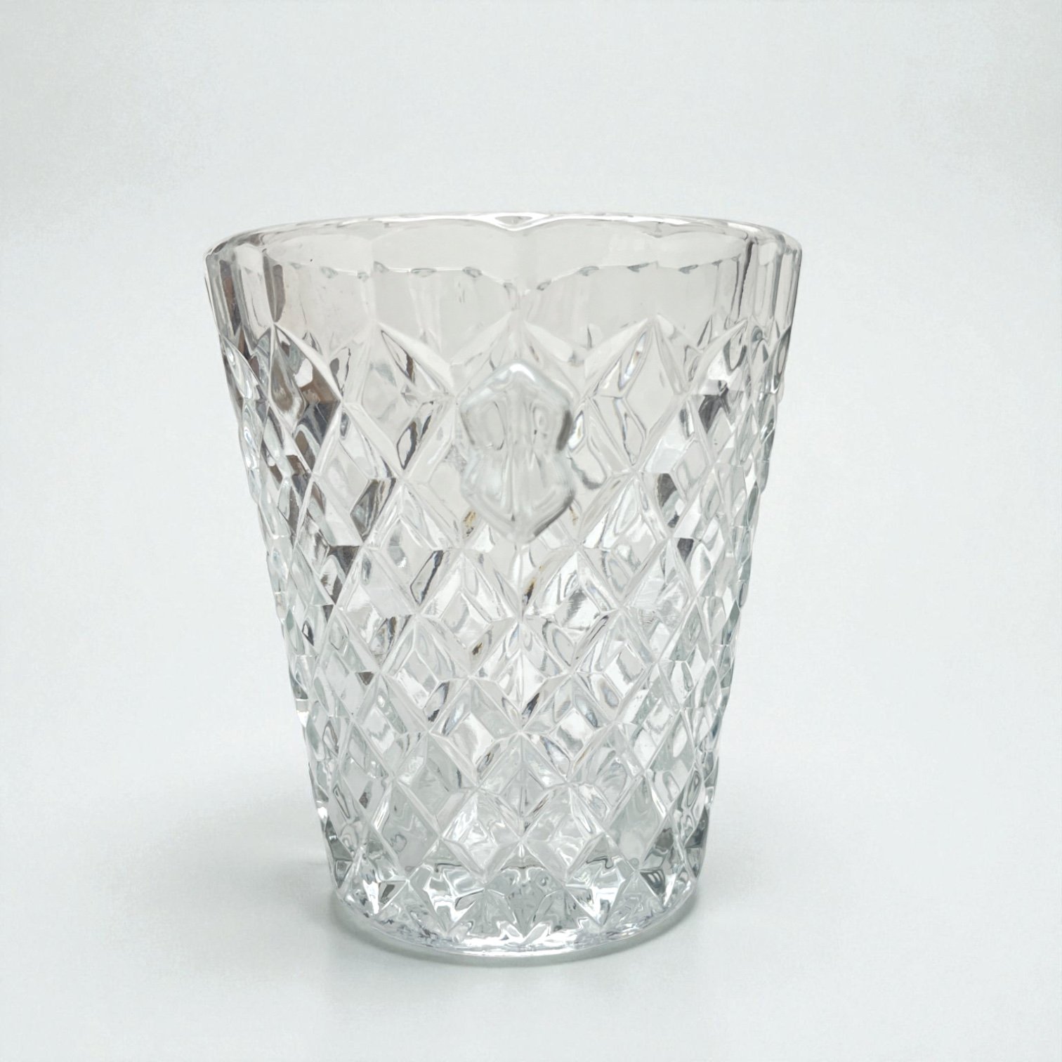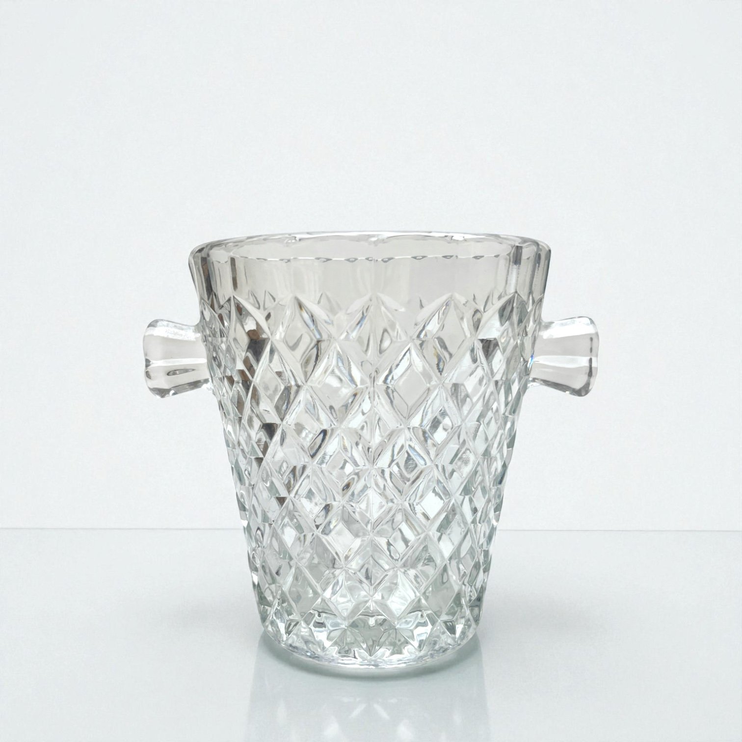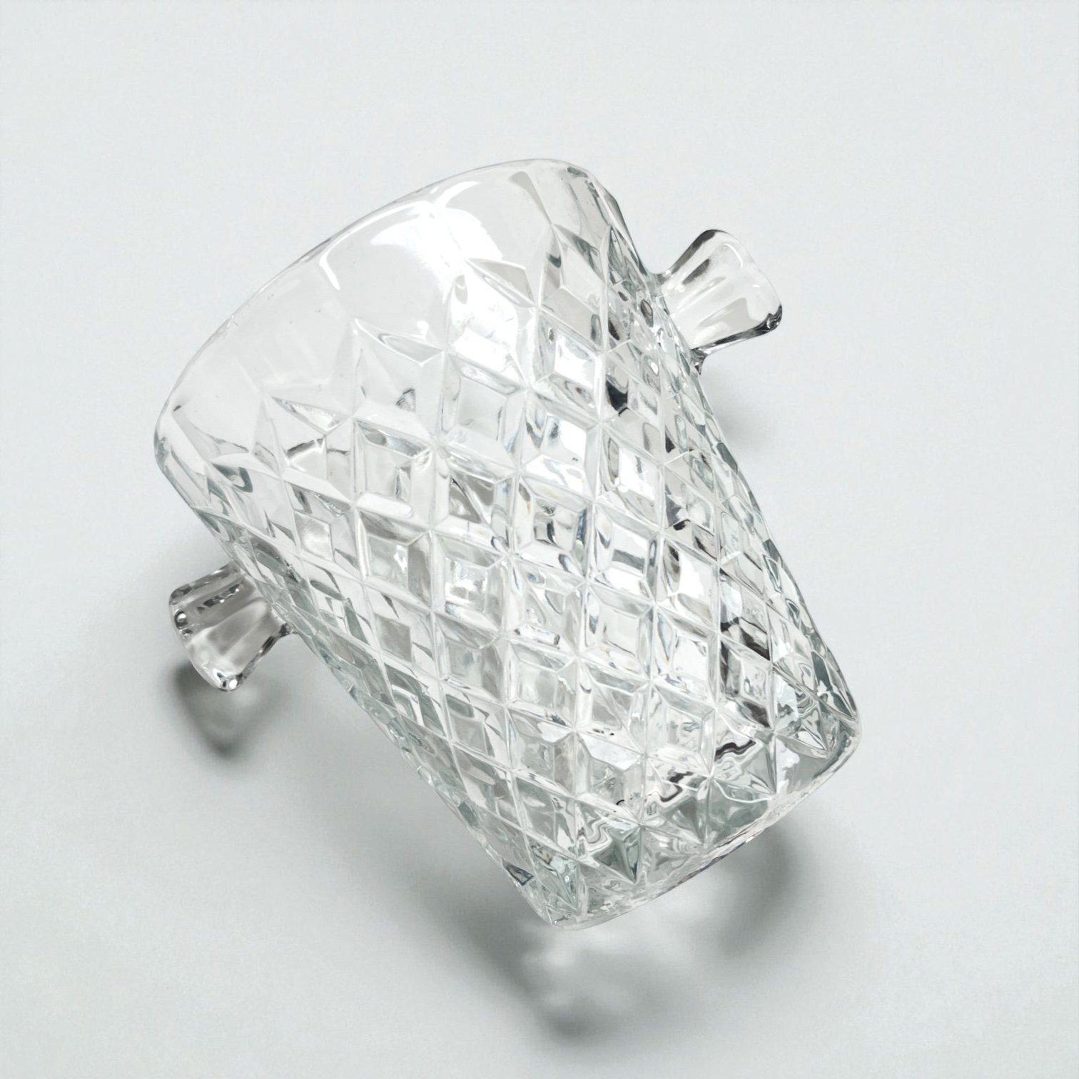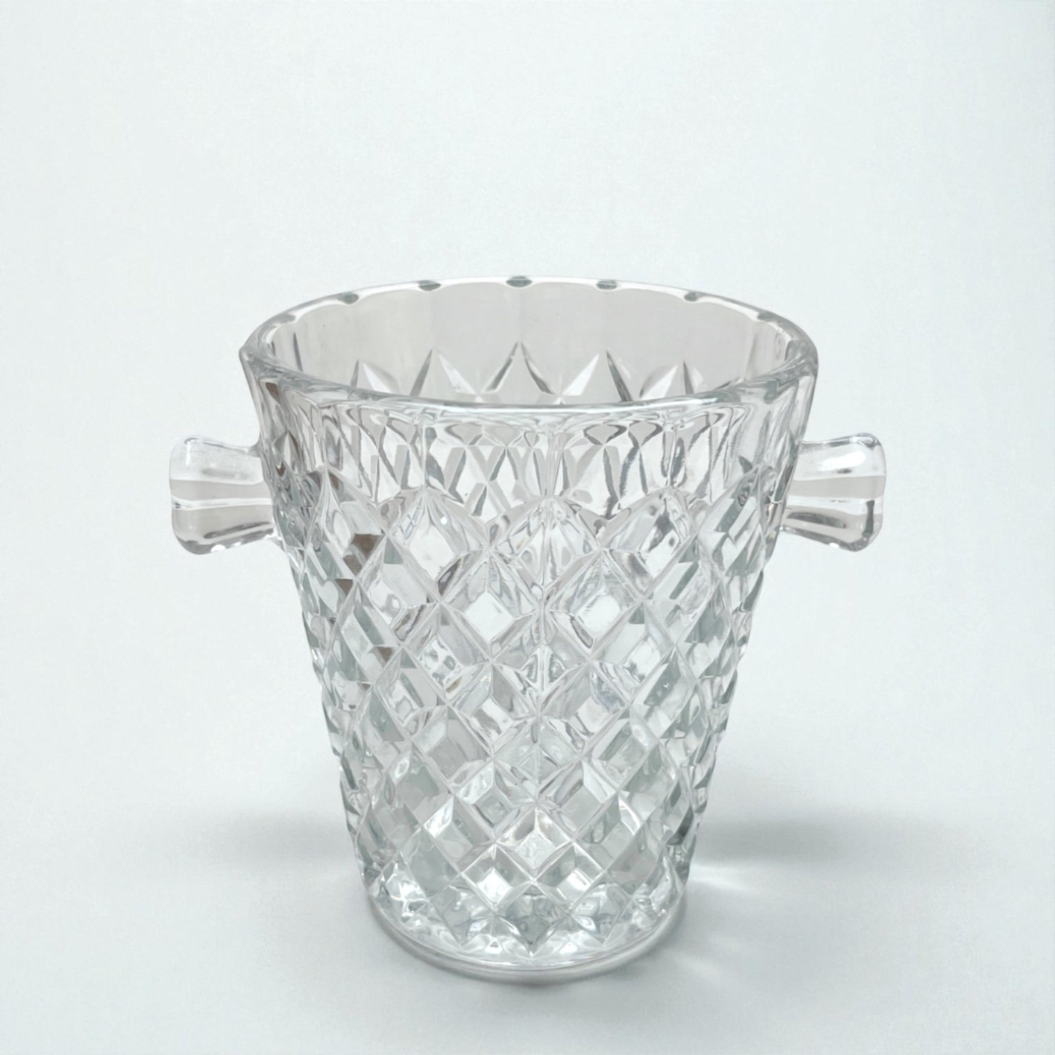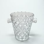 Joli seau à glace en verre moulé motif de losanges en relief, effet pointes de diamant.