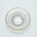 Chaque pièce présente un décor en relief formé de petites boules à la base et un filet doré sur le bord.