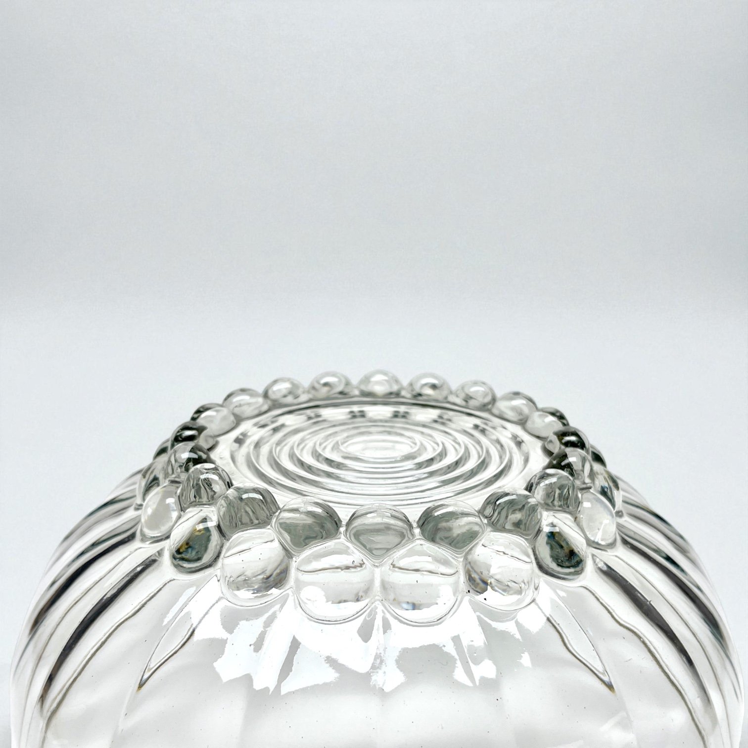 Service à salade de fruits en verre moulé et dorure à décor de boules — années 50