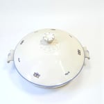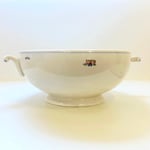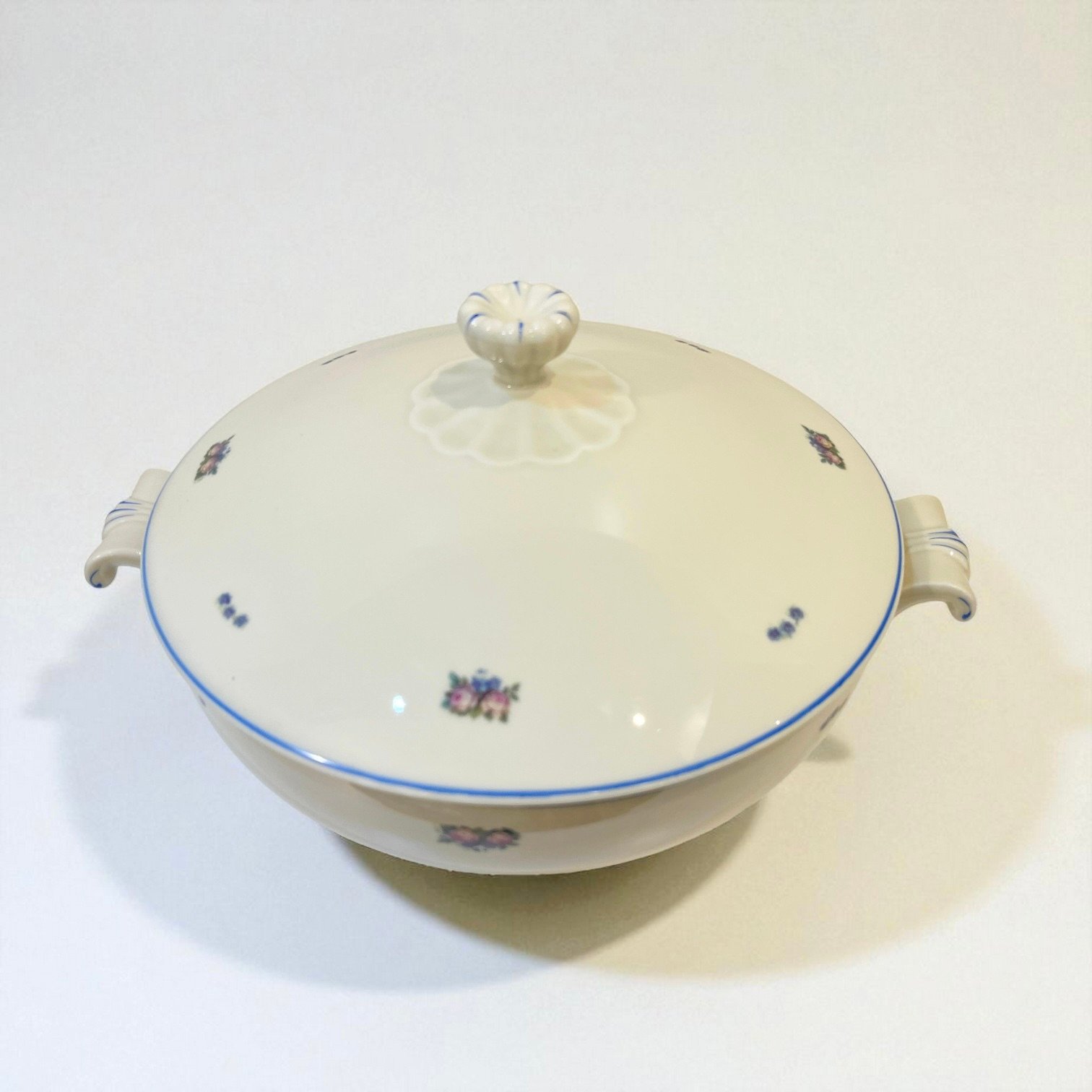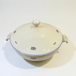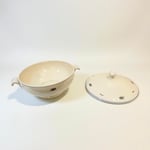 Soupière ou légumière datant des années 30 - 40, en céramique émaillée beige ivoire avec un motif de petites fleurs.