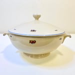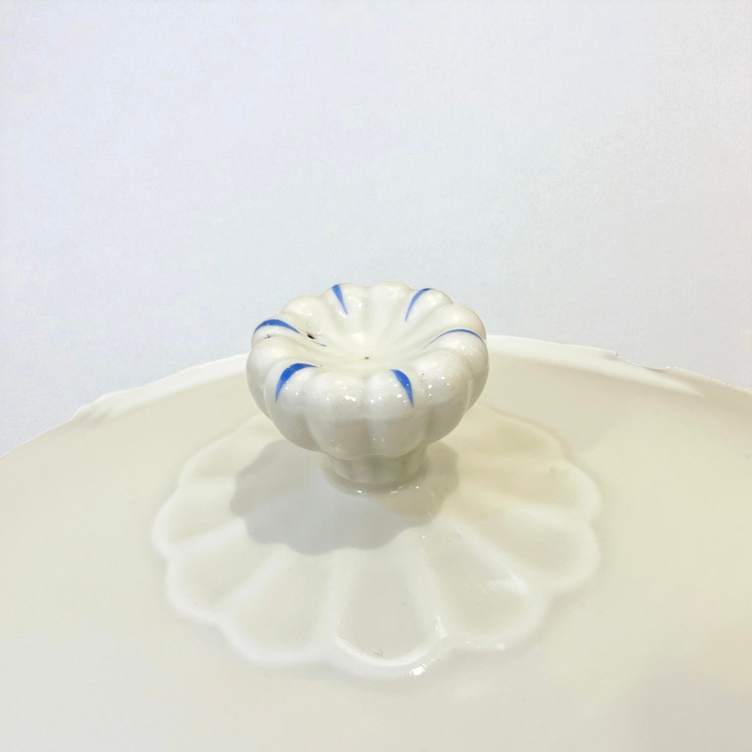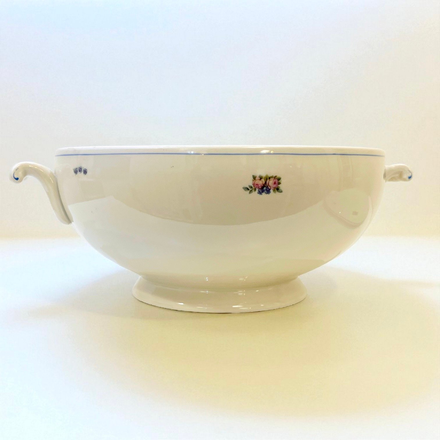 Soupière ancienne en faïence ivoire er motif floral - années 40
