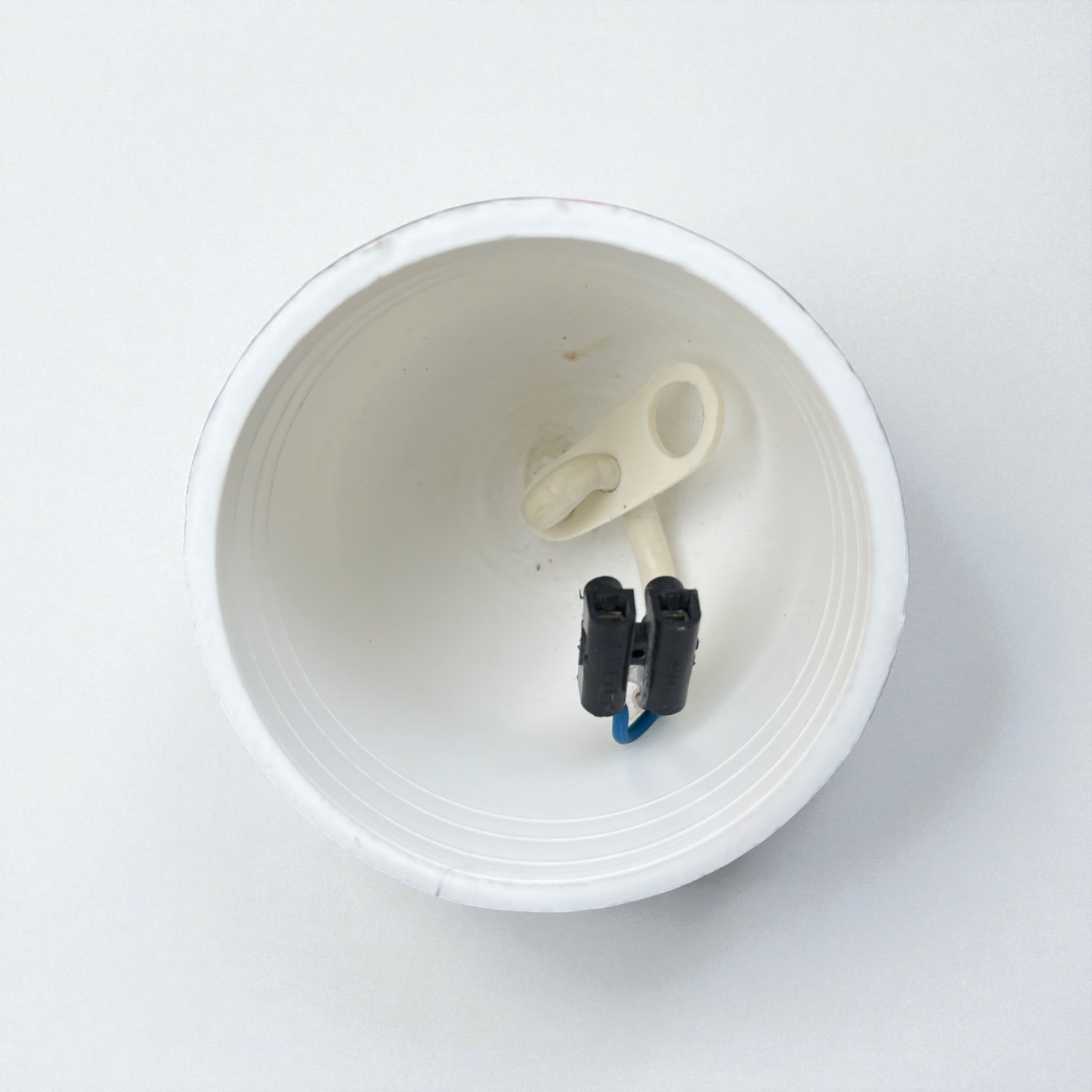 Rosace plafond d'origine en plastique et accroche plastique. Electricité refaite.