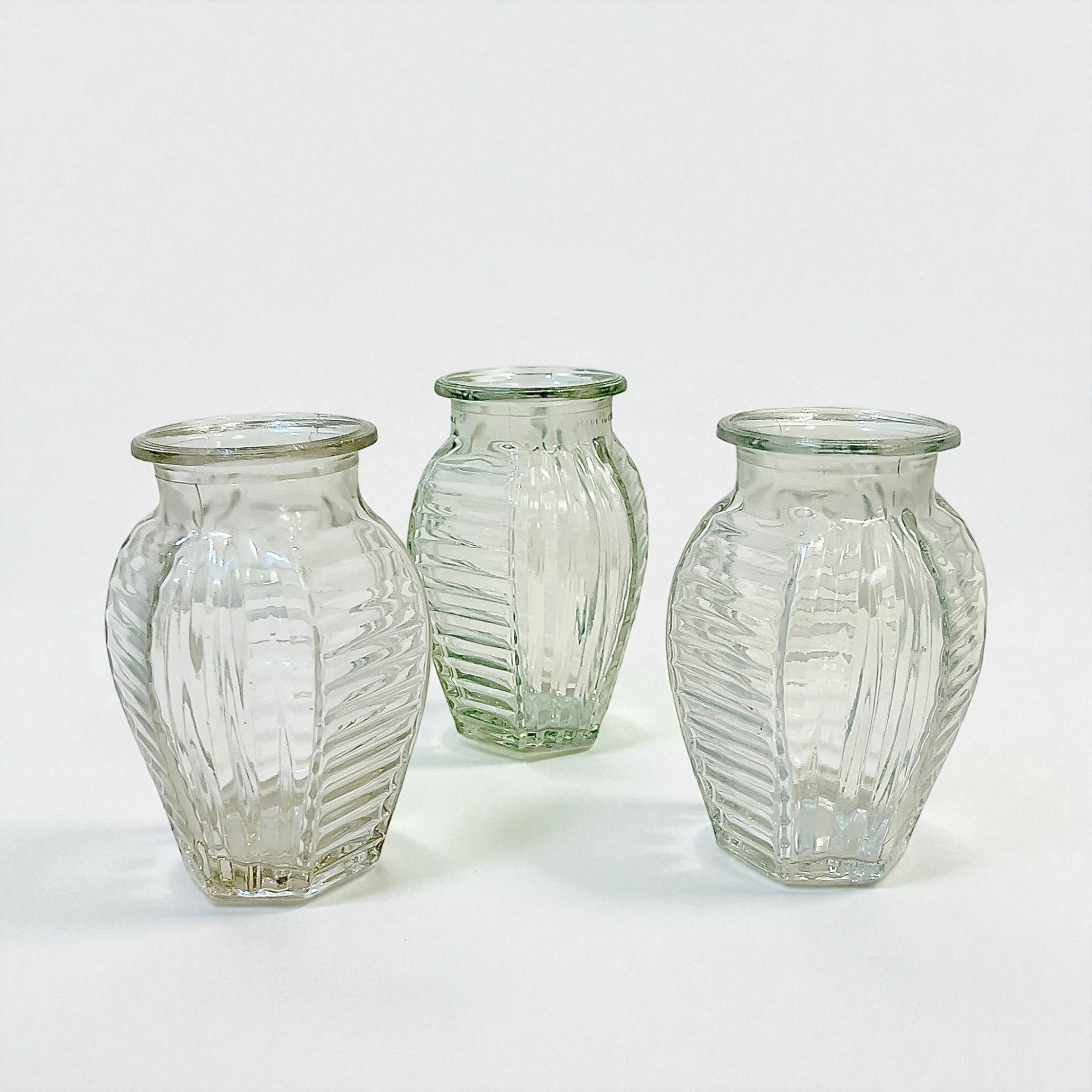 Vase à jacinthe Art Déco – Verre moulé ancien (vers 1930) – Style Skyscraper