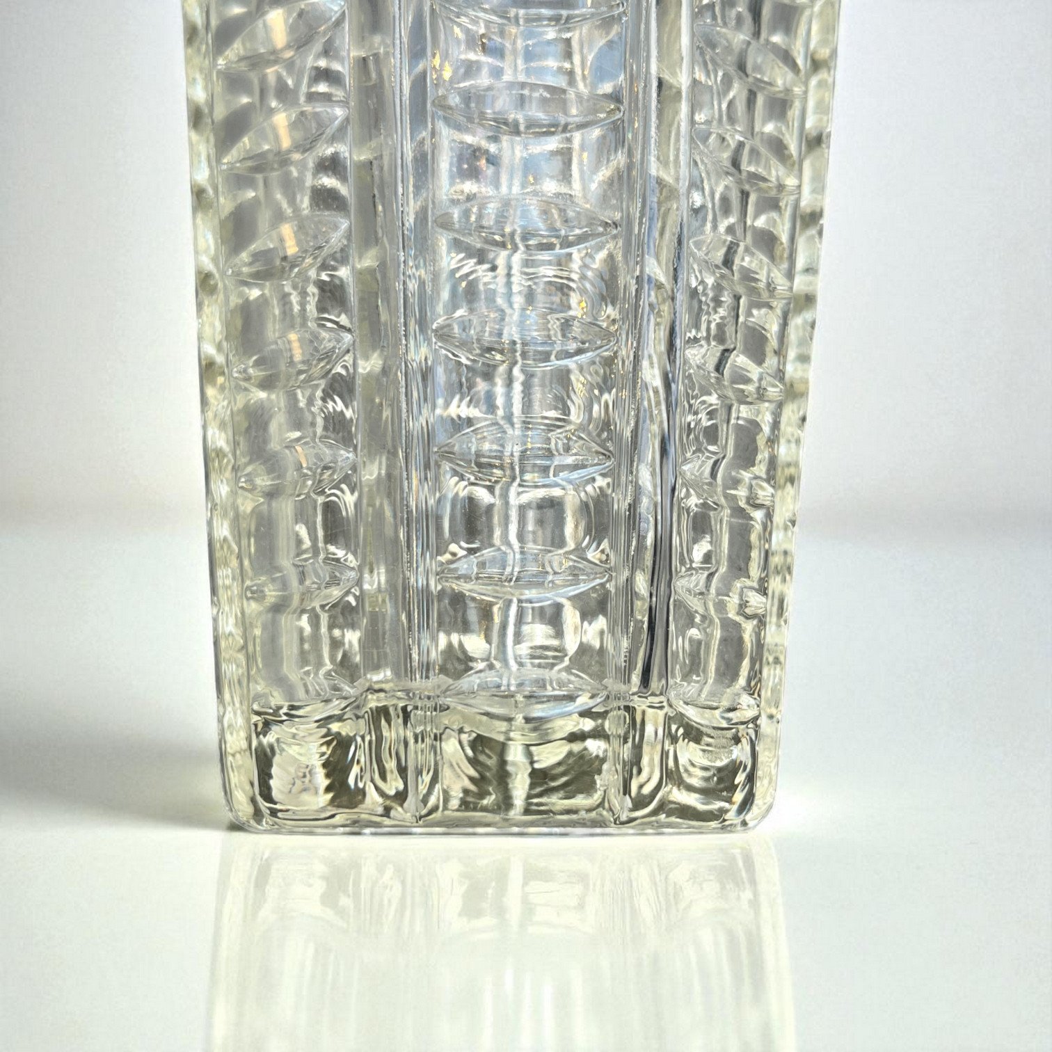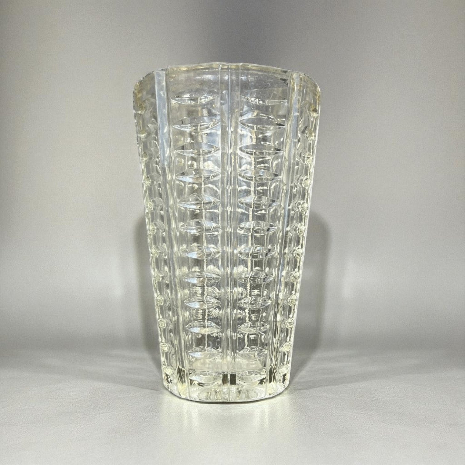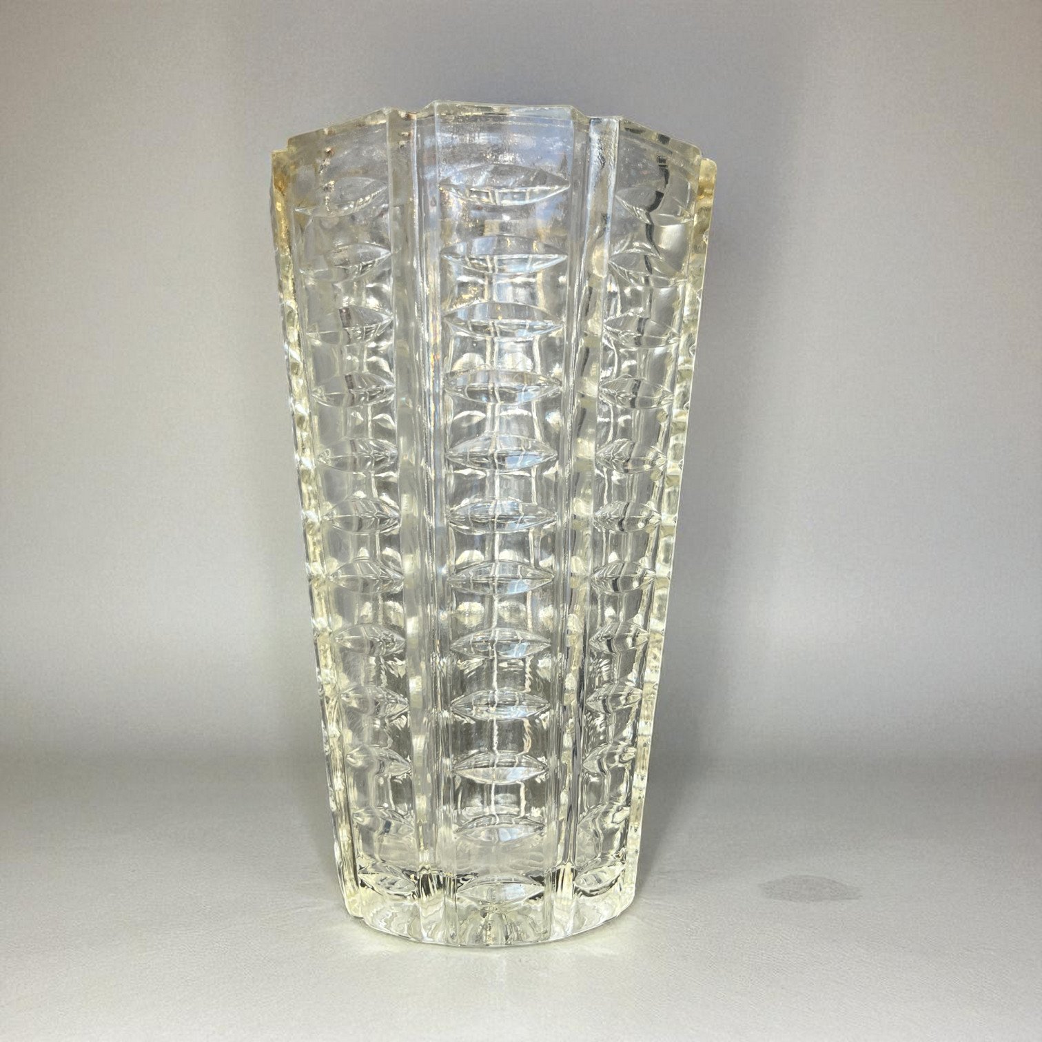 Vase Art Déco vintage en verre moulé géométrique – Années 40
