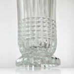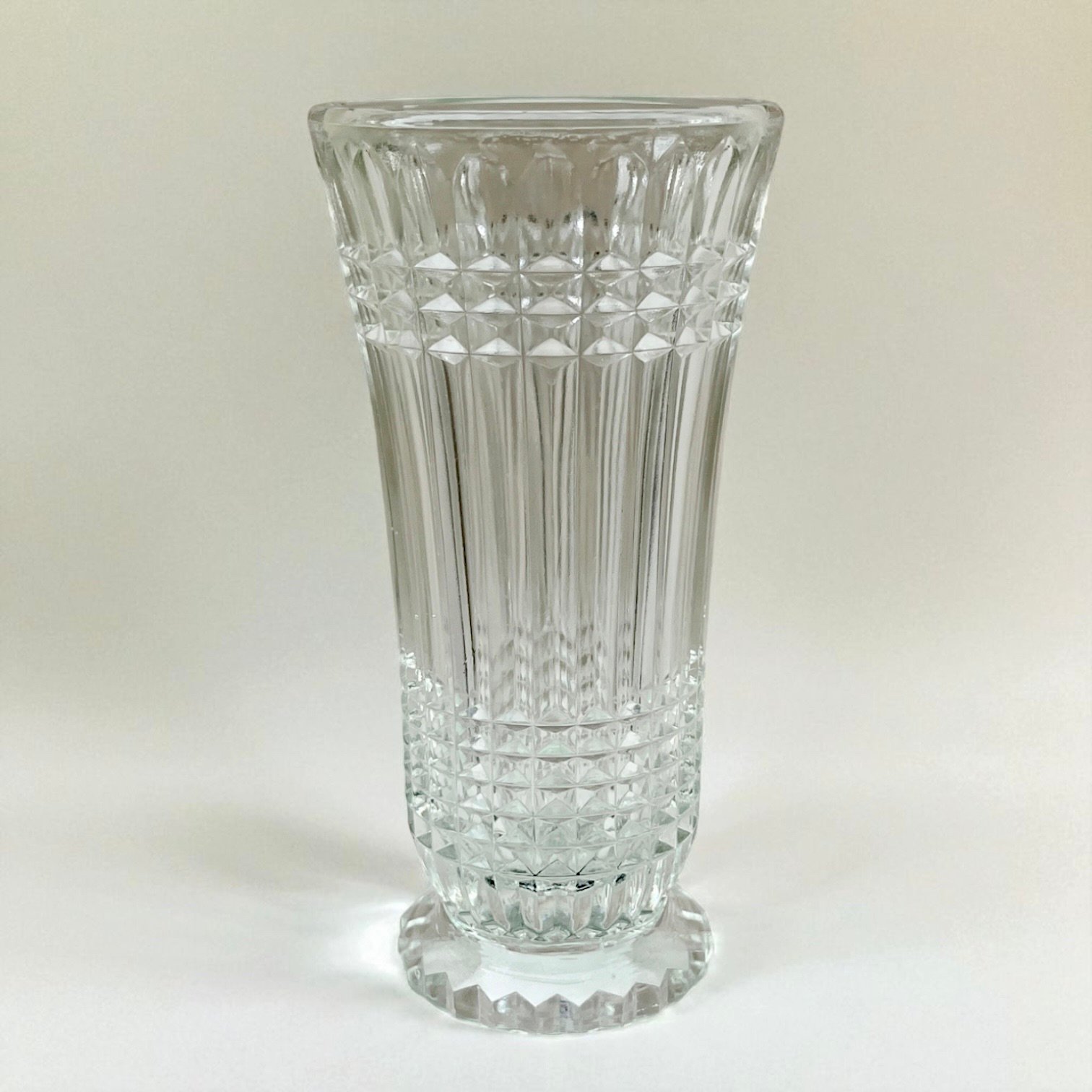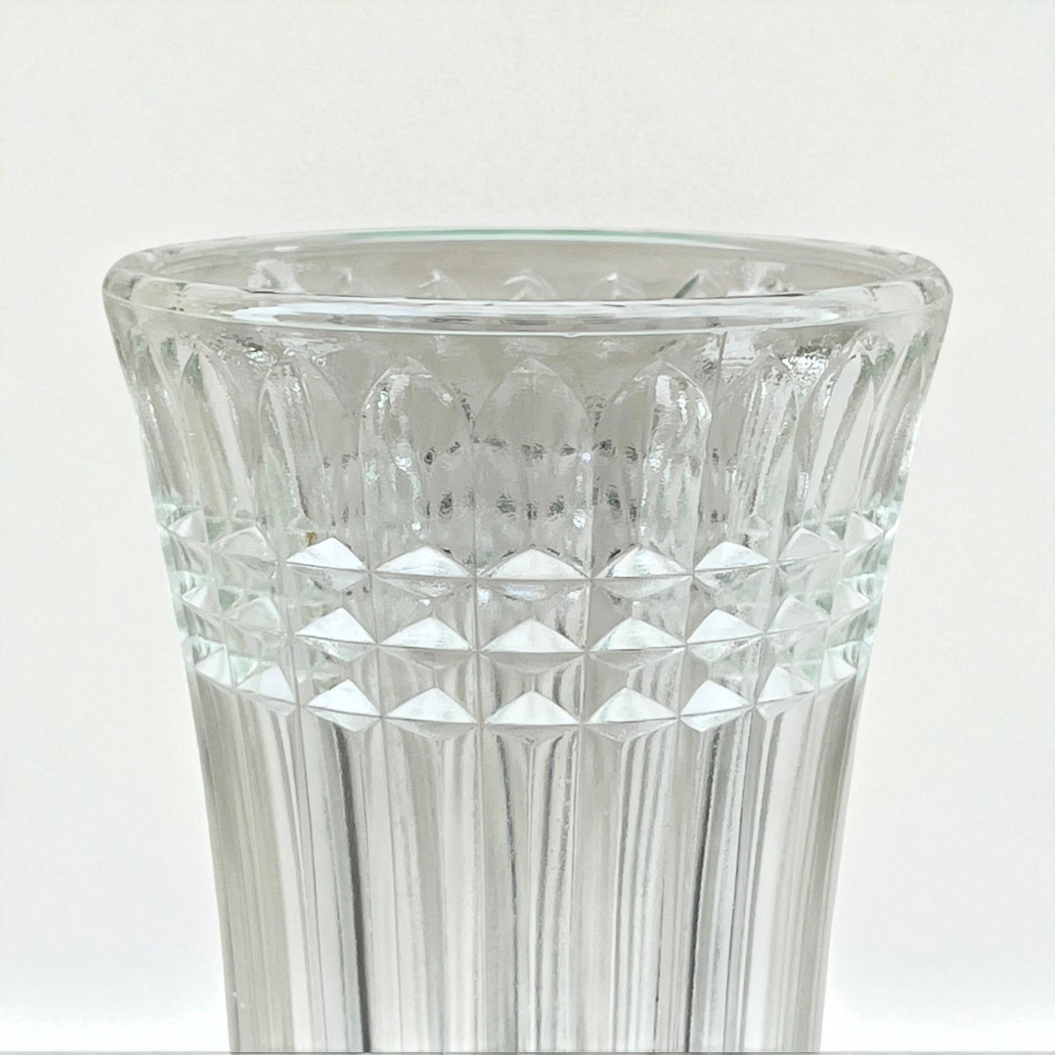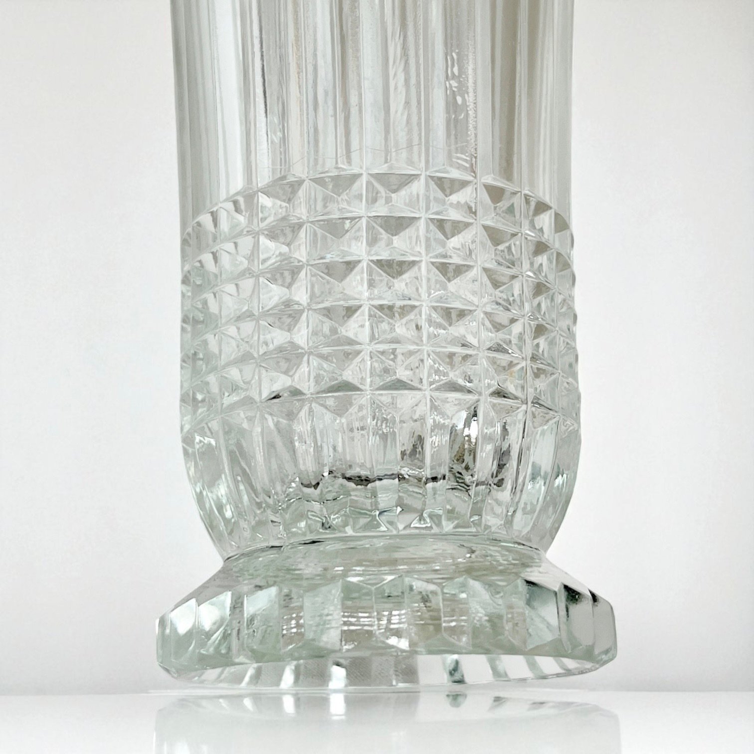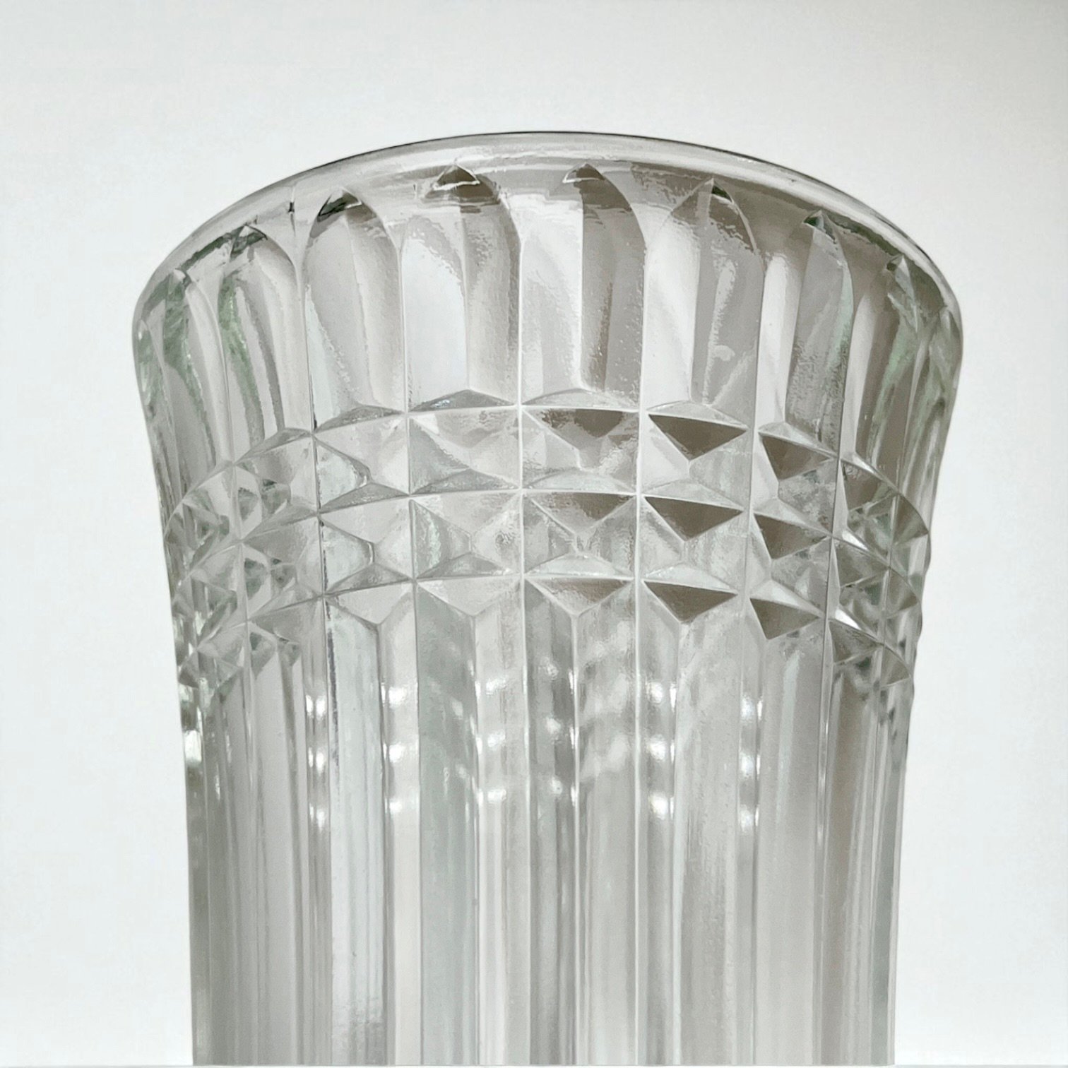 Grand vase Art Déco en verre moulé avec pied ancien 1930s 1940s motif géométrique - pointes de diamant.