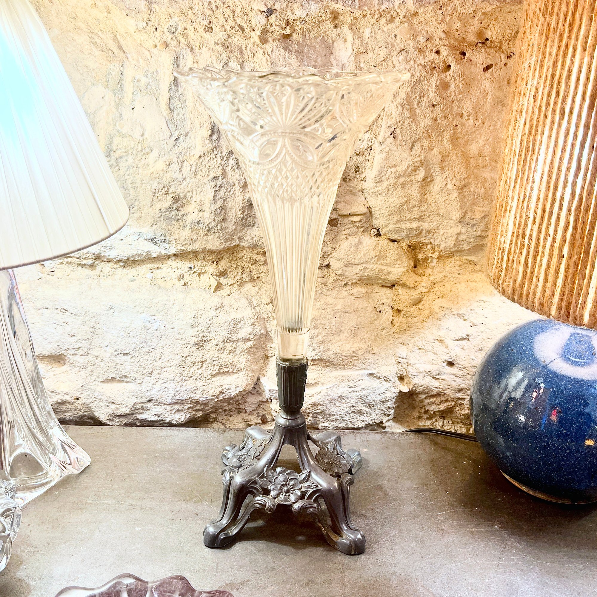Un bel objet ancien, idéal pour une décoration vintage, une mise en scène florale ou pour compléter une collection de verrerie Art Nouveau.