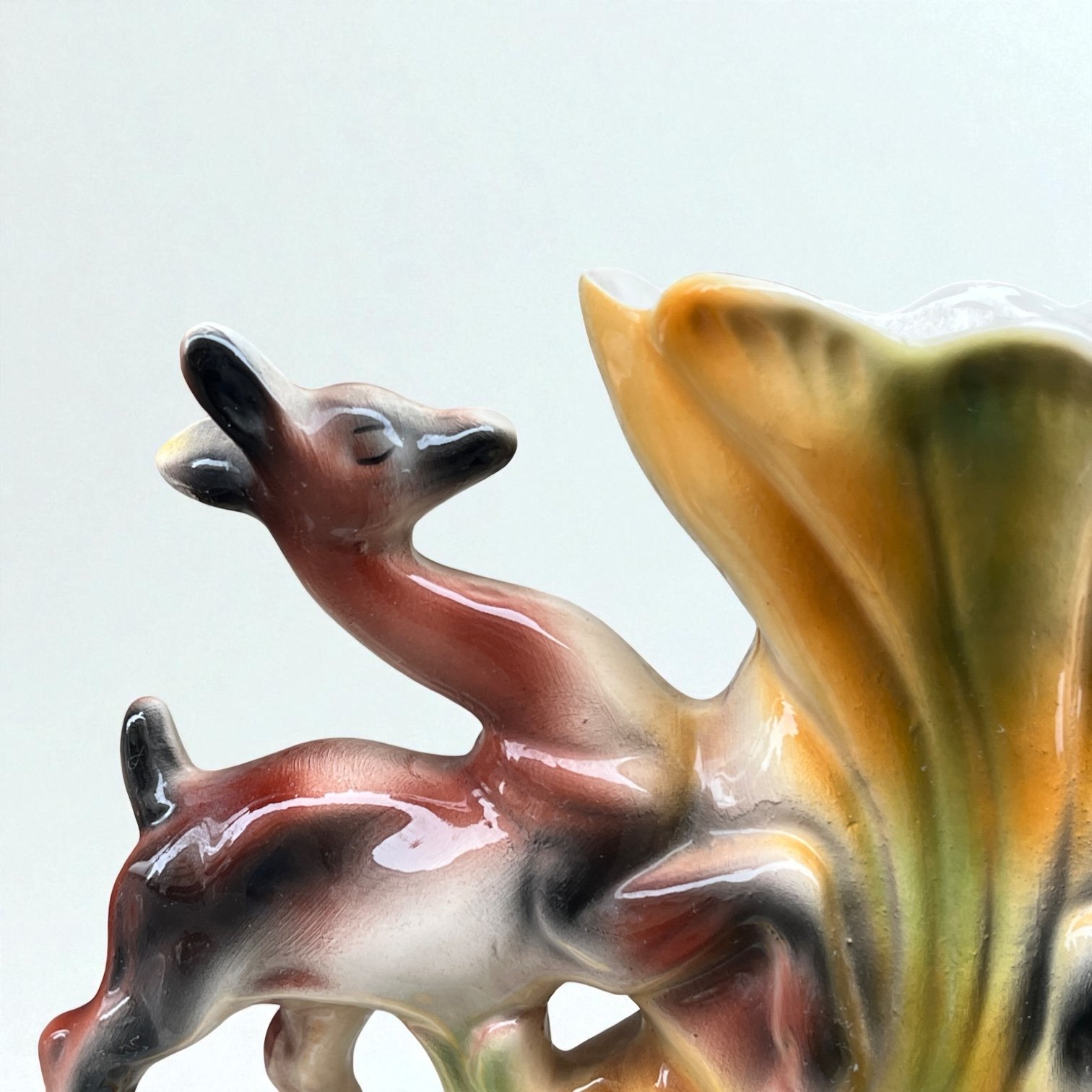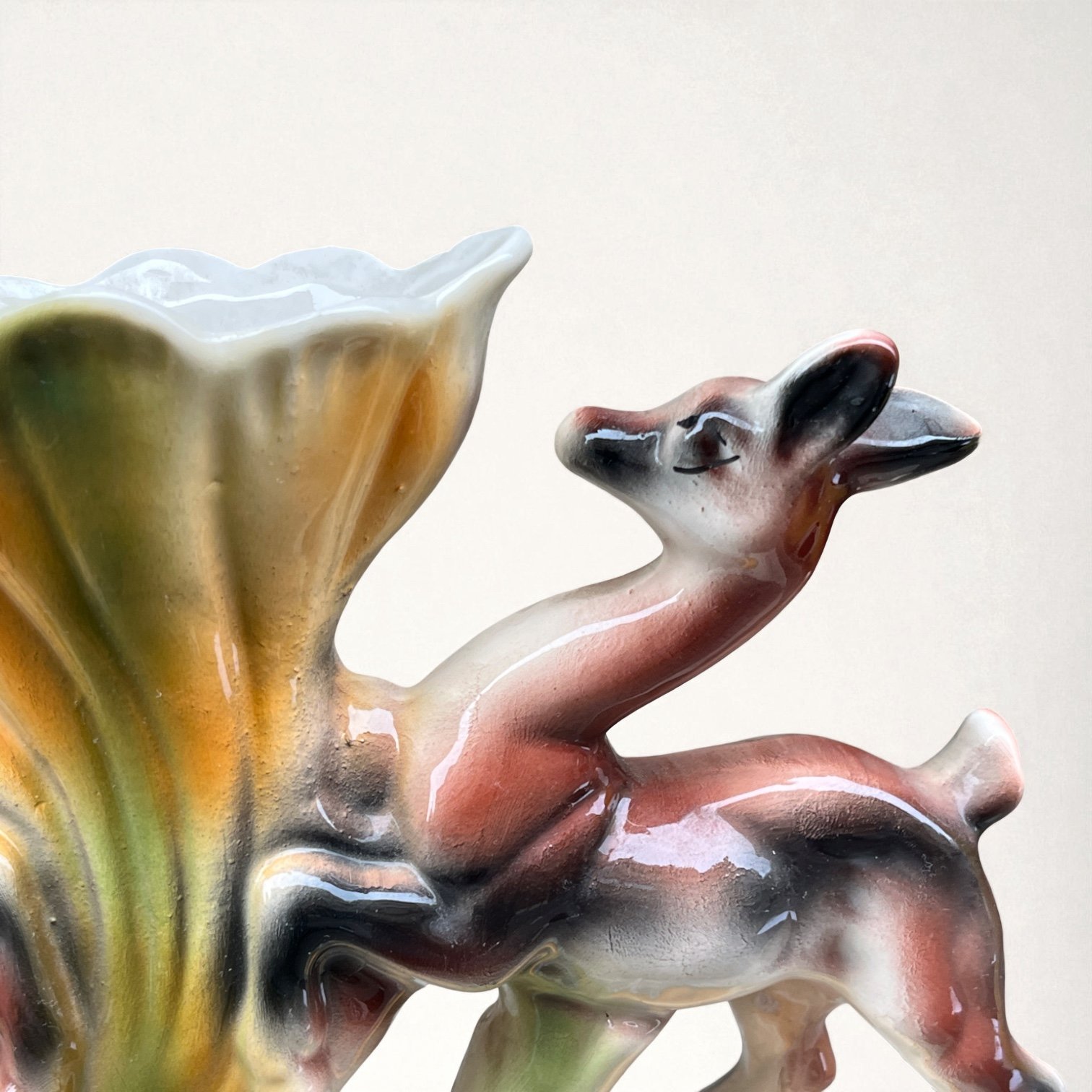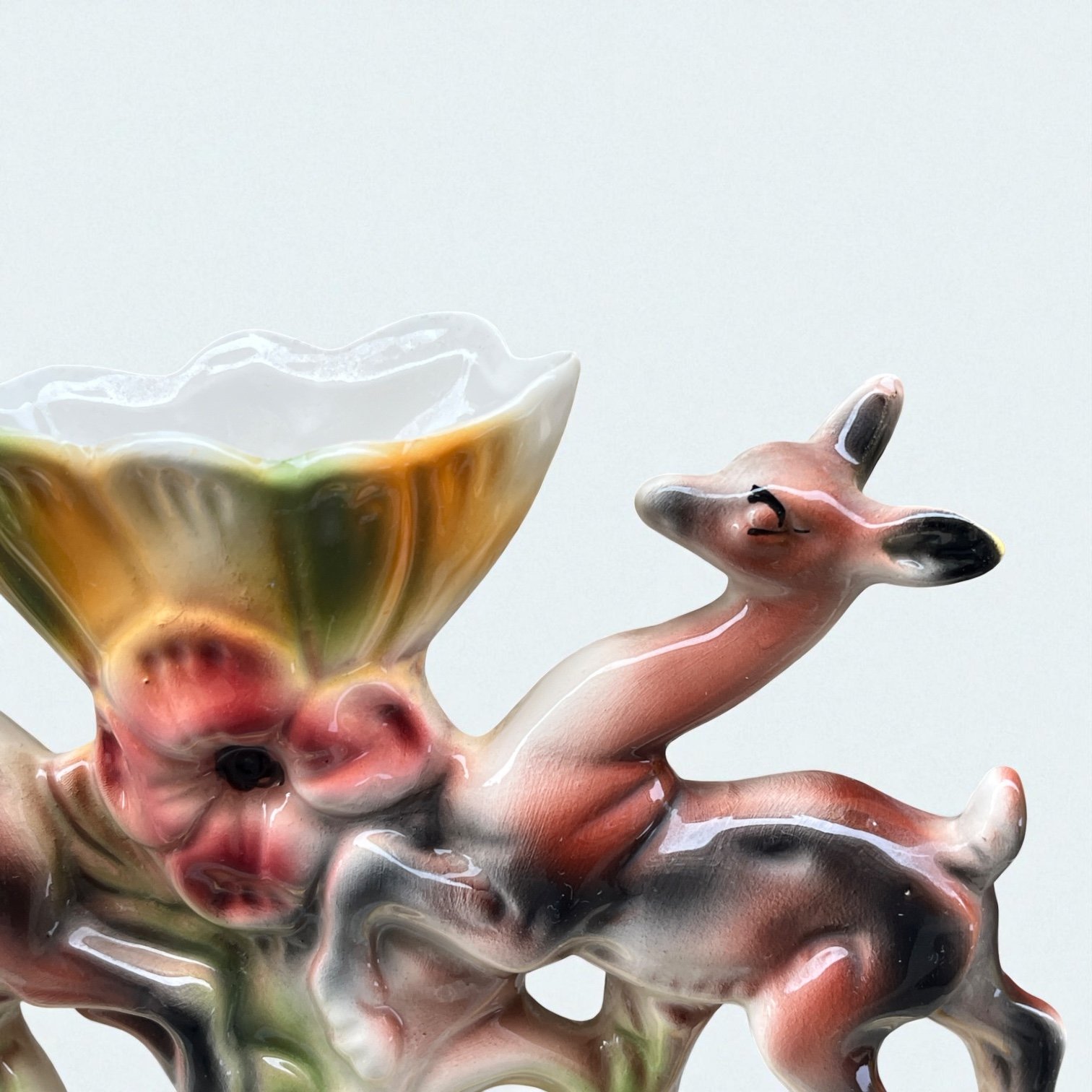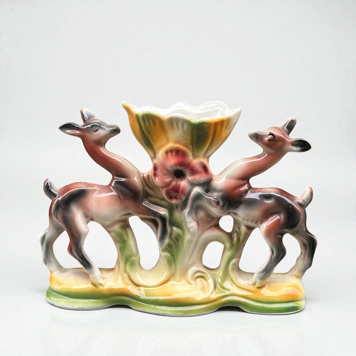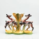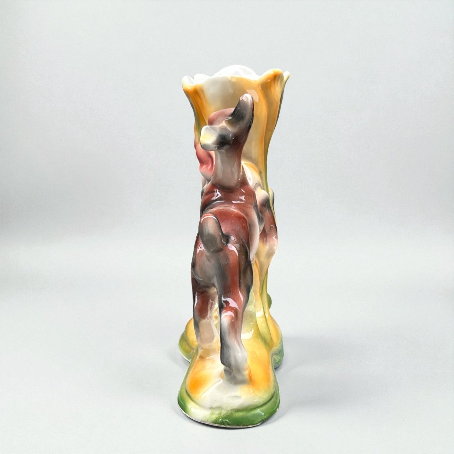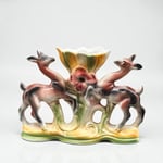 Vase italien en céramique polychrome vintage biches et fleur - ICAP - Italie - XXe