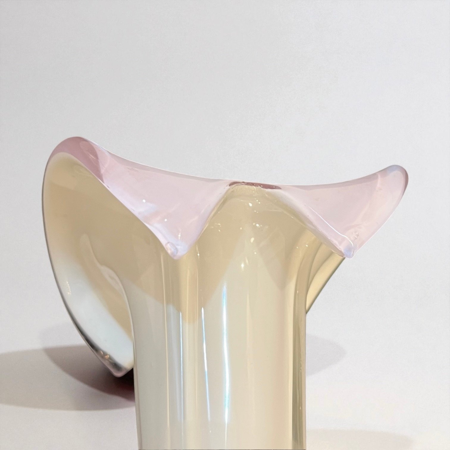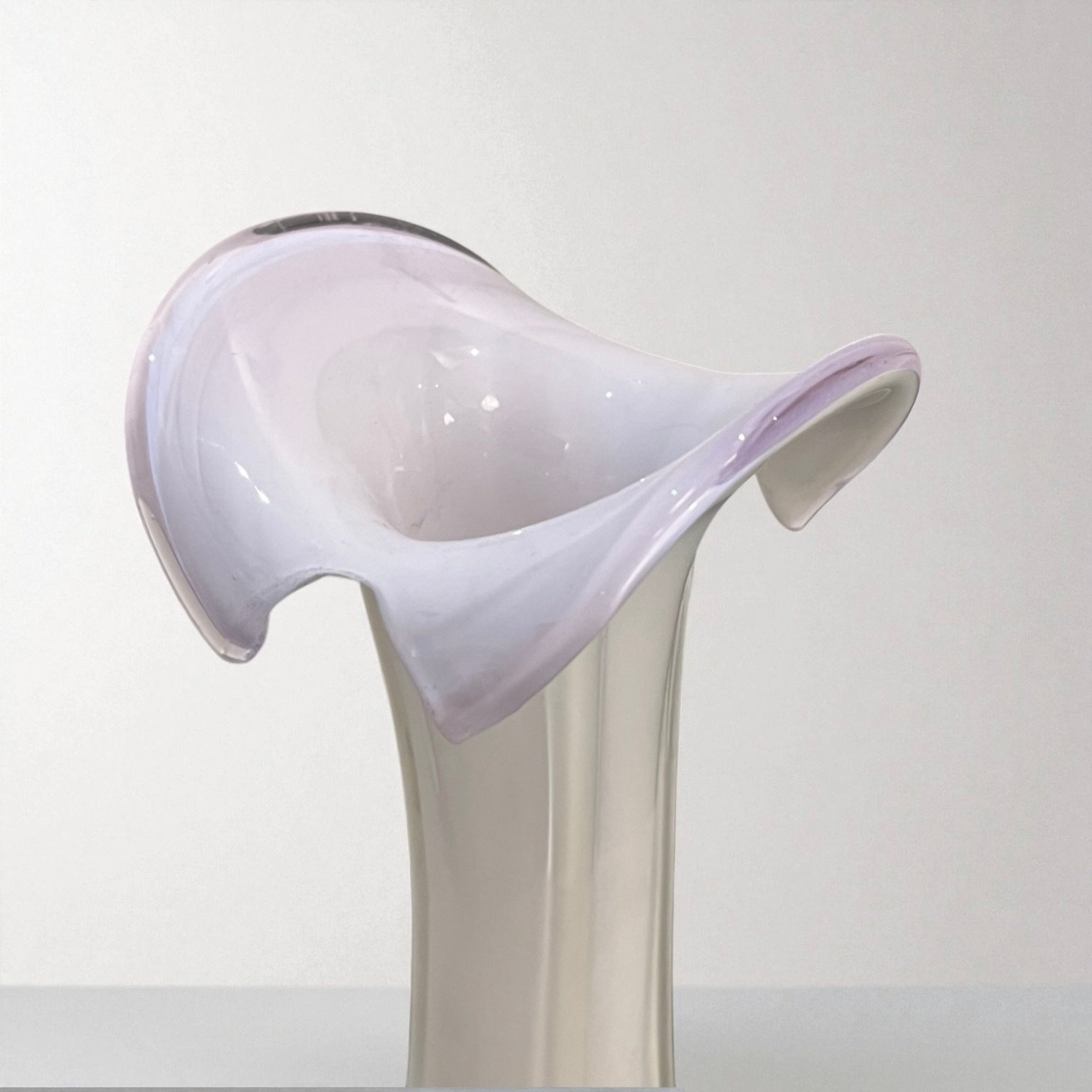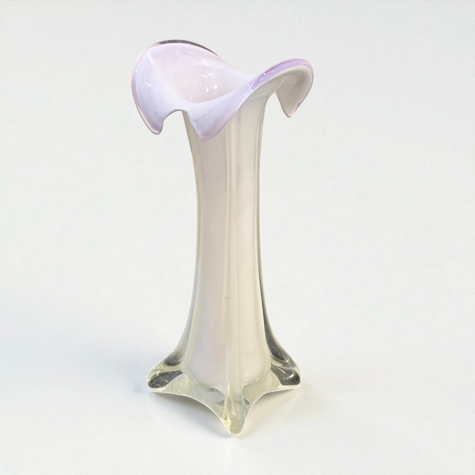 Vase soliflore en verre soufflé de Murano blanc - parme vintage 1970