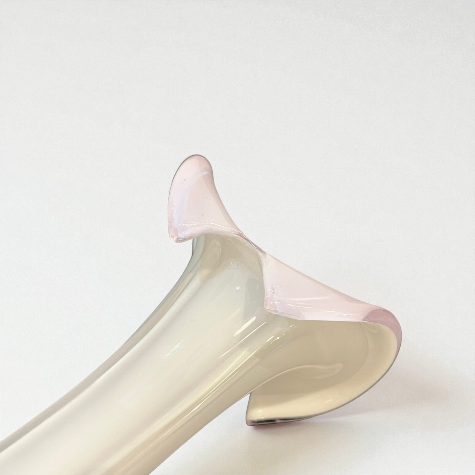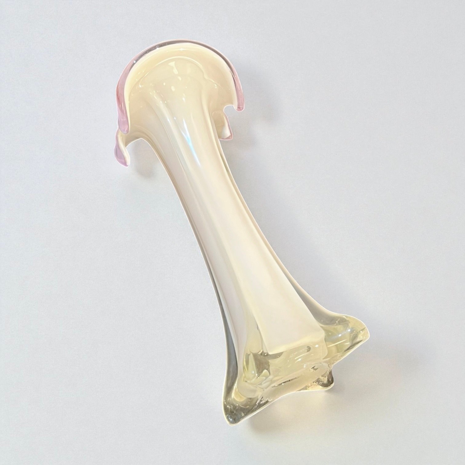 Vase soliflore vintage en verre soufflé de Murano transparent et blanc, légèrement parme sur le haut - Technique Sommerso datant des années 1960s - 1970s. Verrerie d'Art.