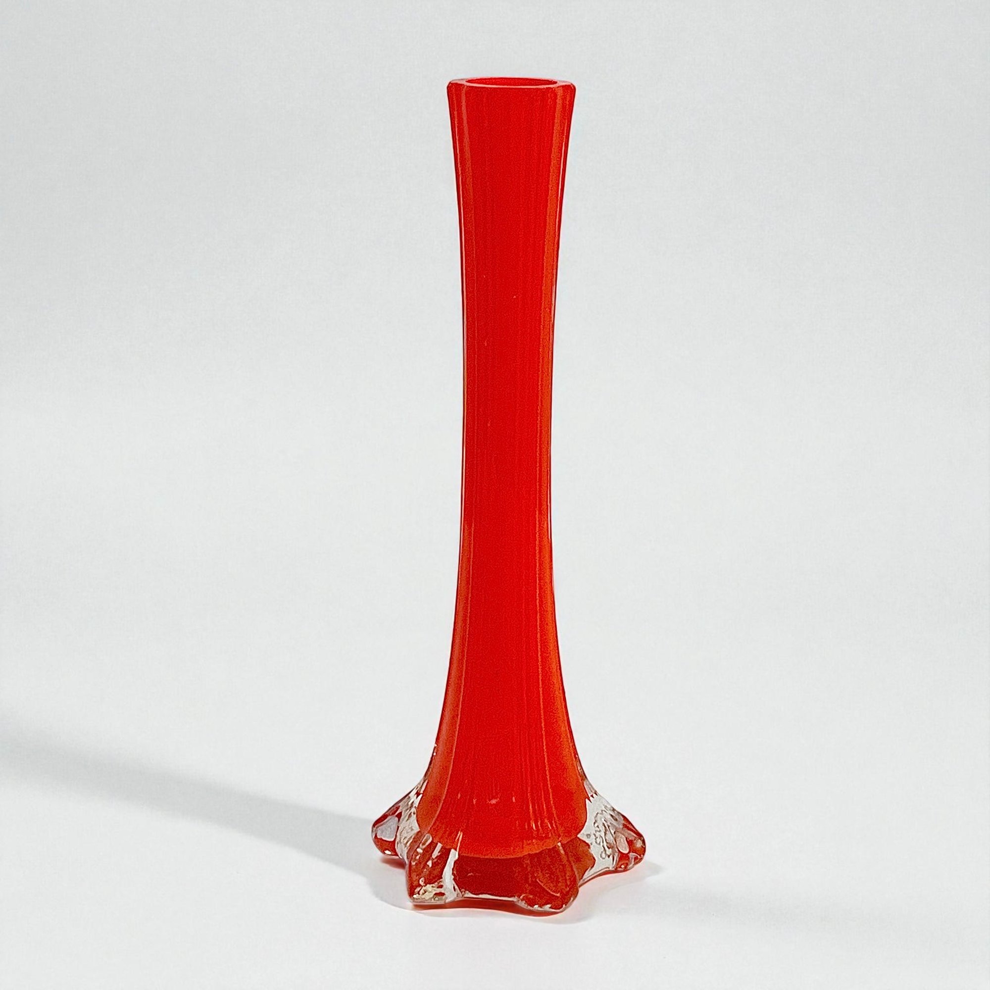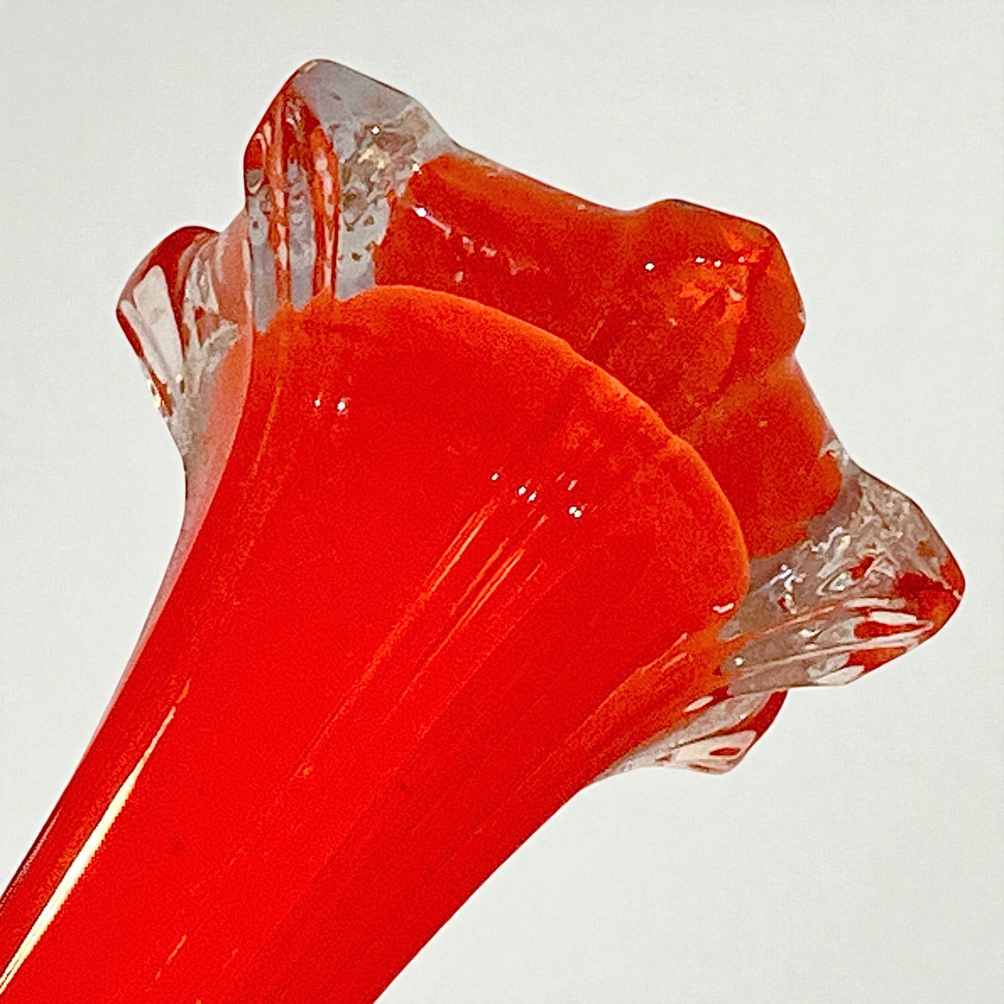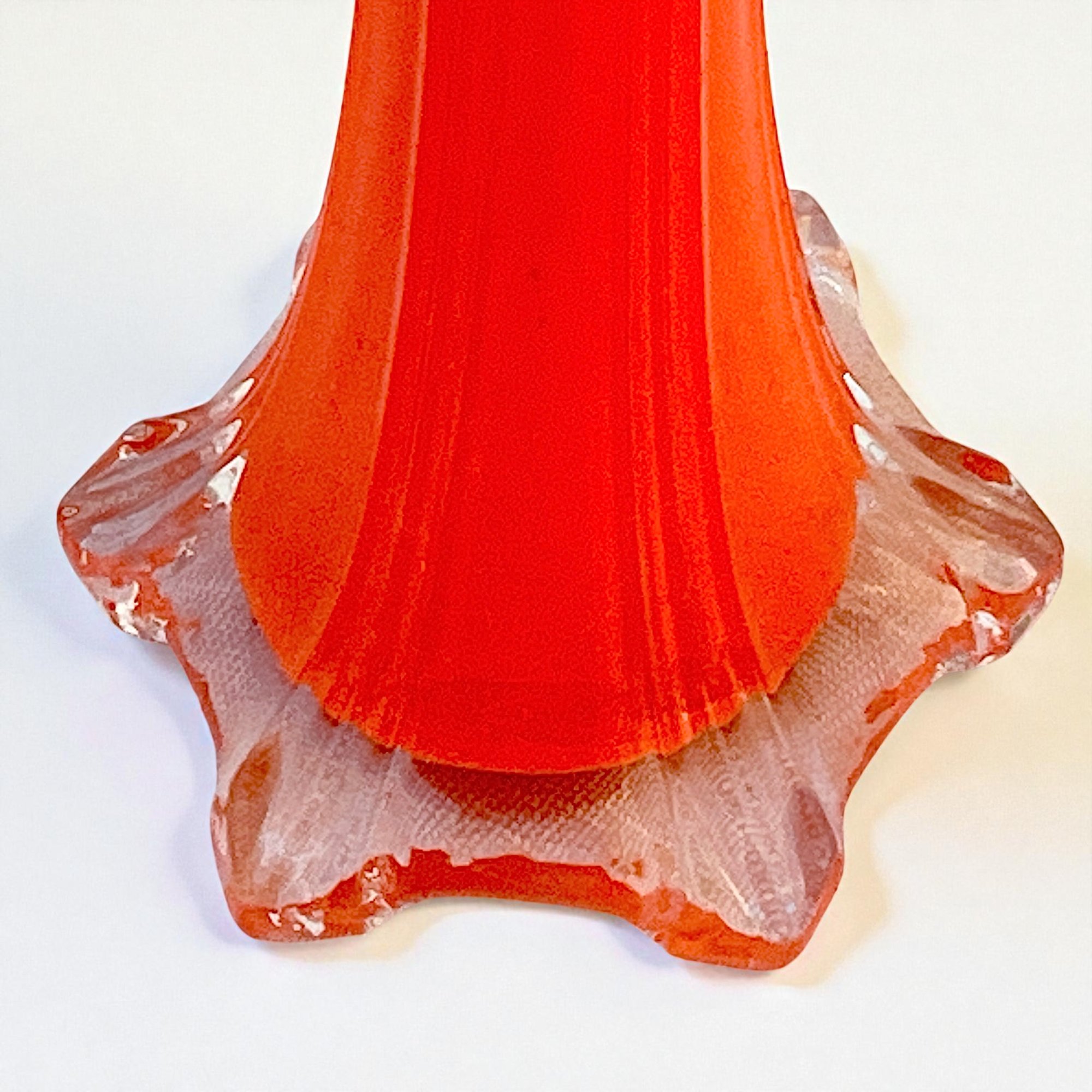 Vase soliflore vintage des années 70s en verre double transparent et orange