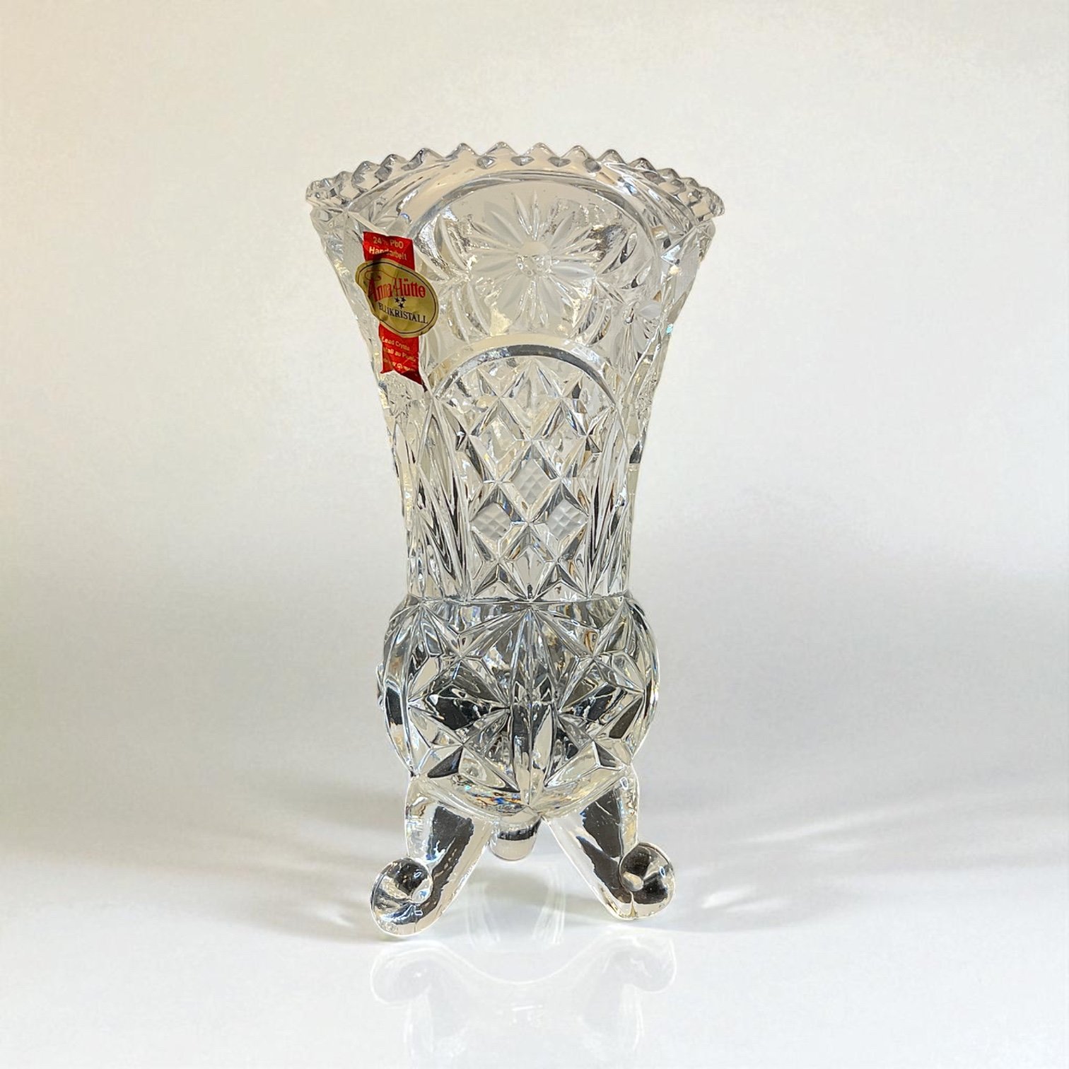 Vase sur pied vintage en cristal taillé signé Anna Hütte - West Germany - 1970