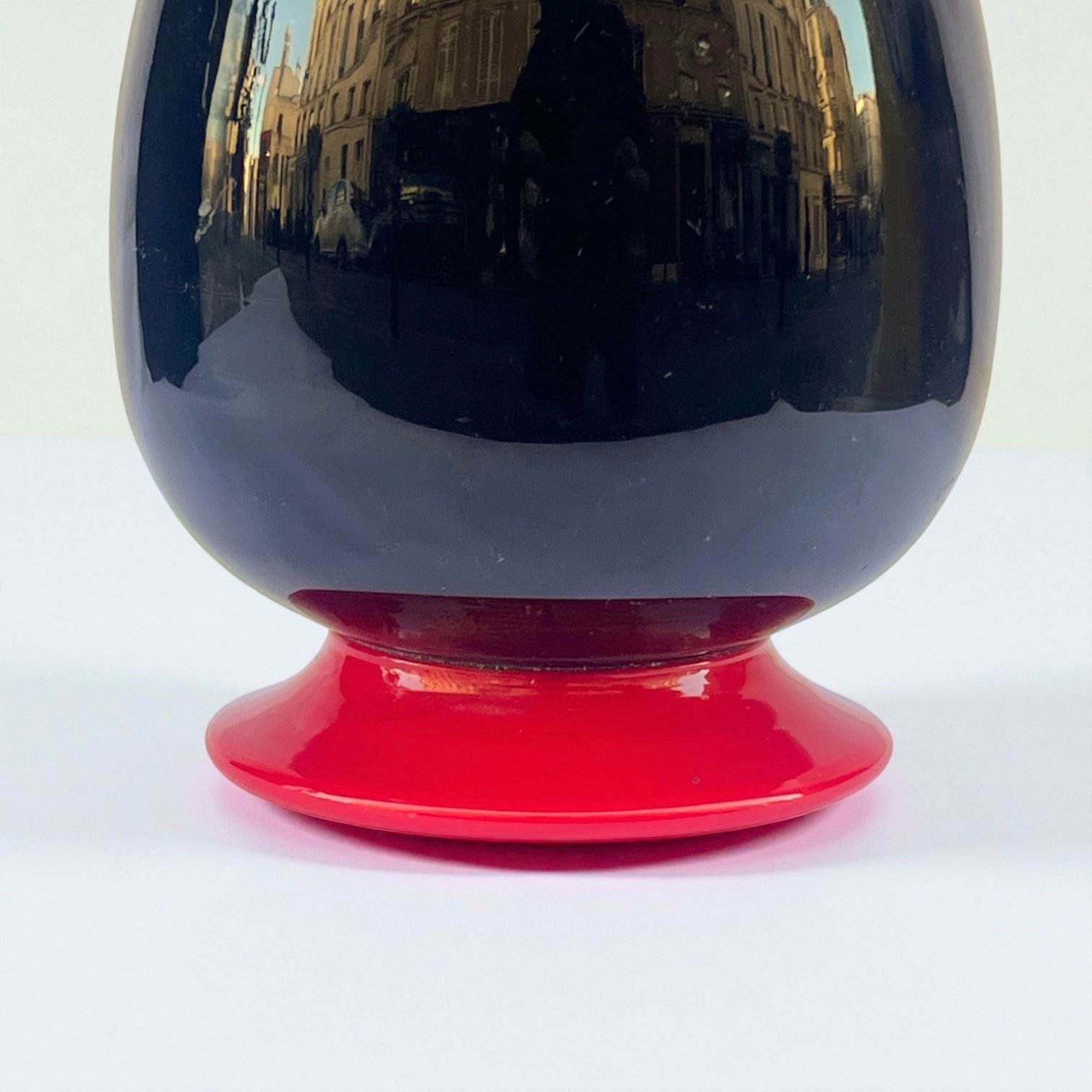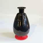 Ancien vase en verre soufflé de Murano noir avec une base rouge des années 1930.