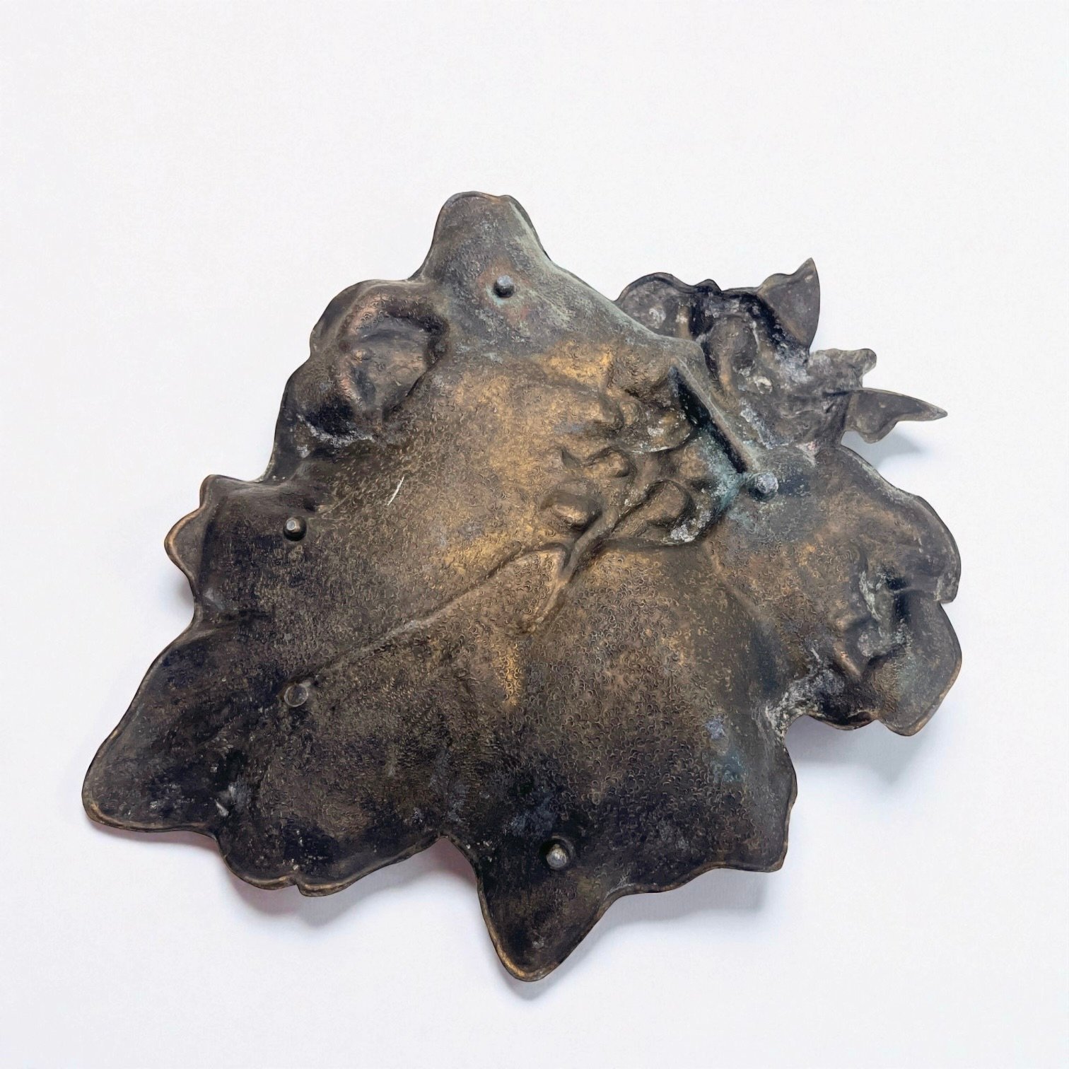 Charmant vide-poche ancien en métal patiné bronze.