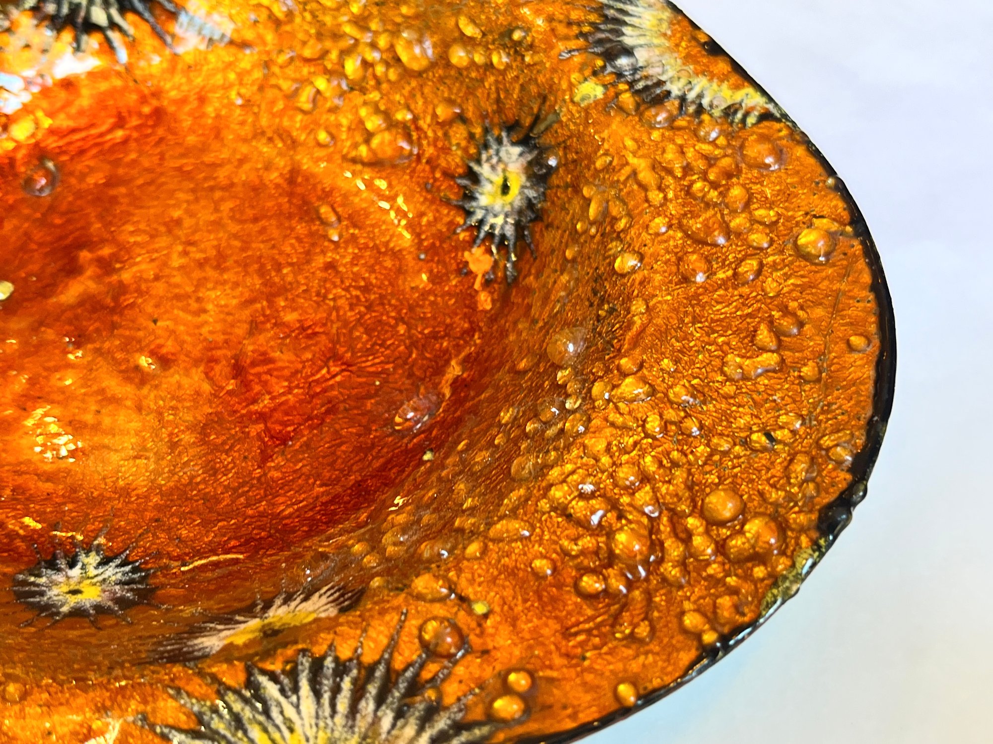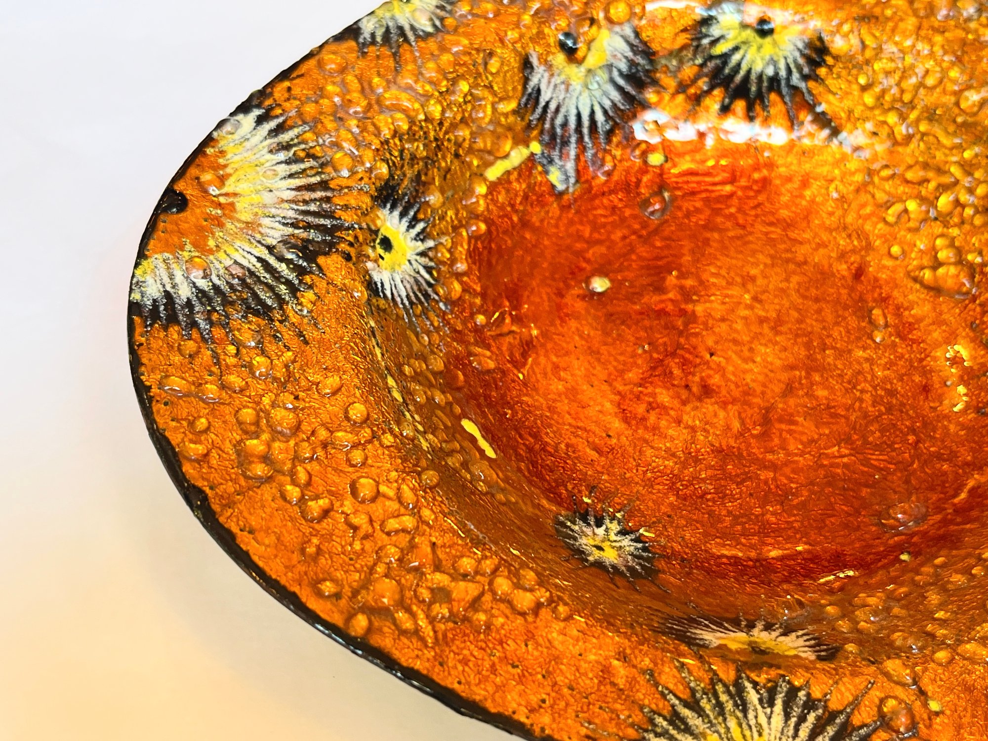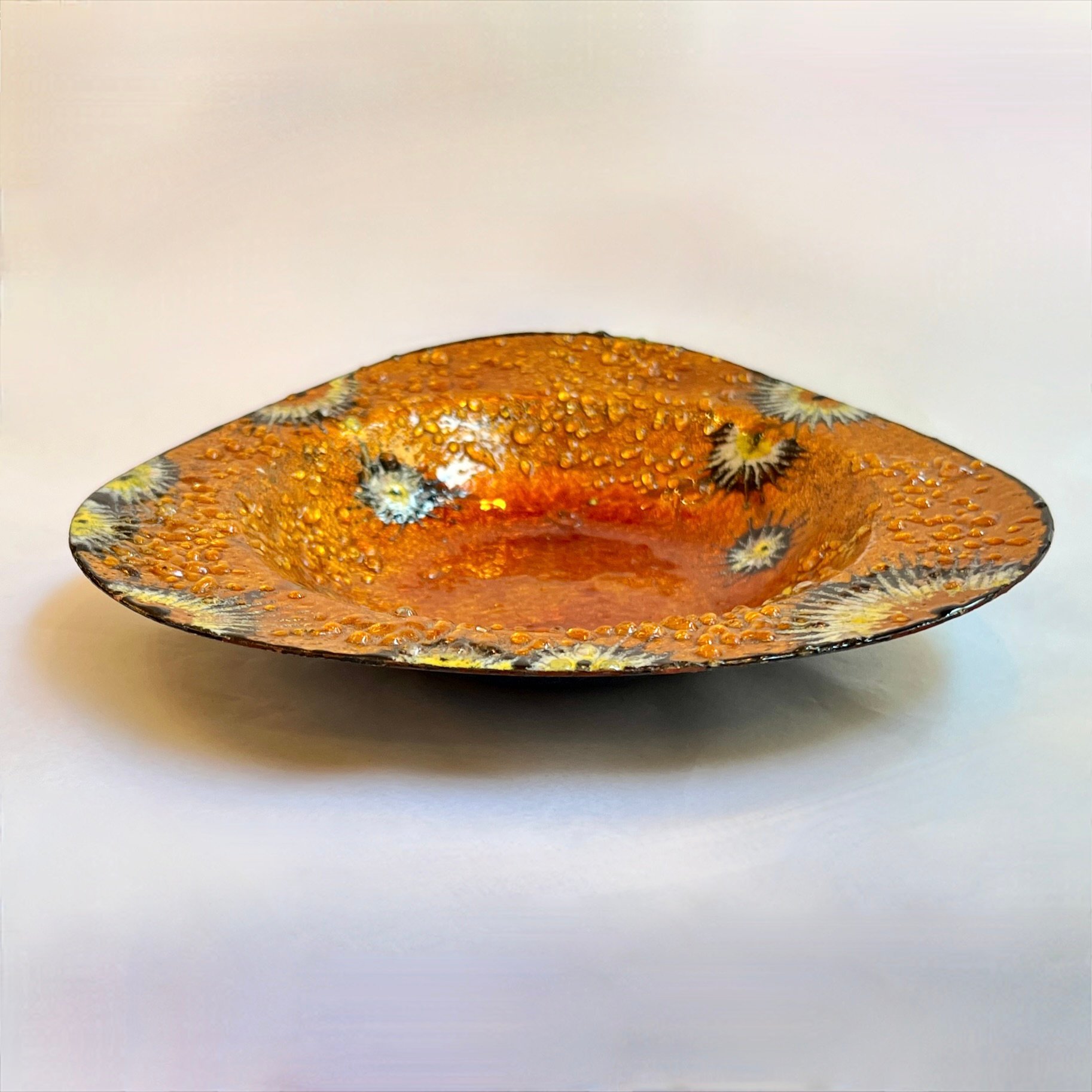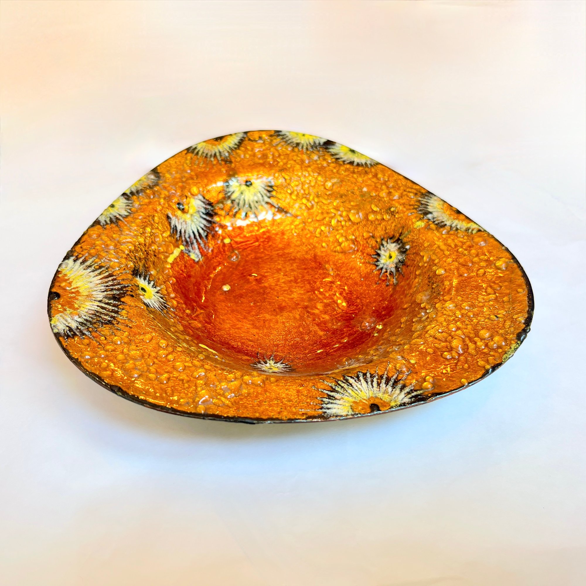 Vide-poche psychédélique orange vintage 1960 1970 émail d'Art sur cuivre