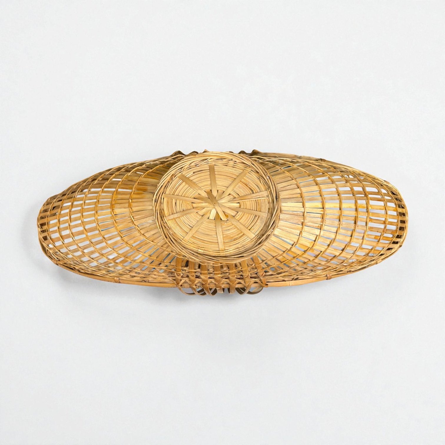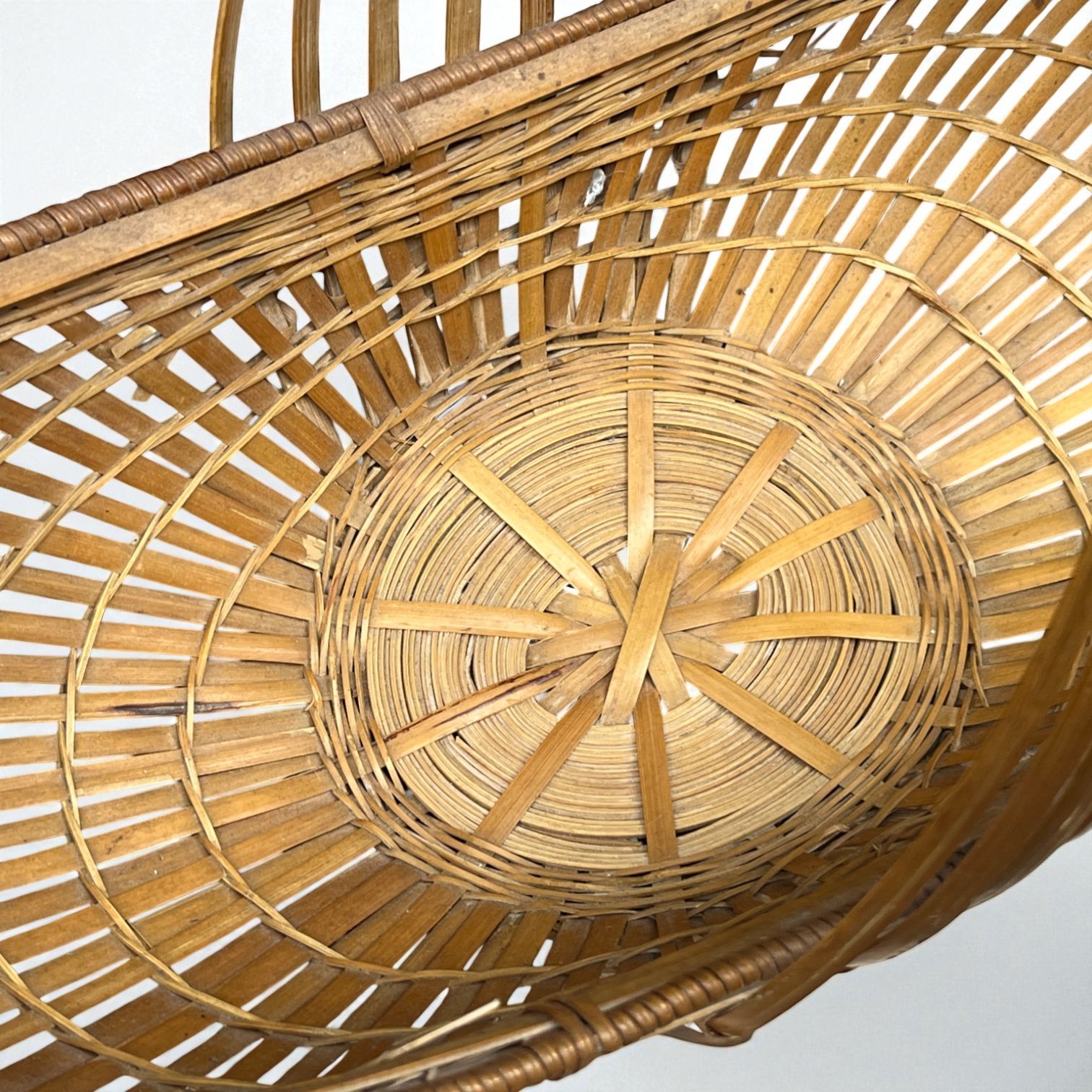XXL - Panier en osier avec anses oblong vintage - Panier bateau en osier 60s